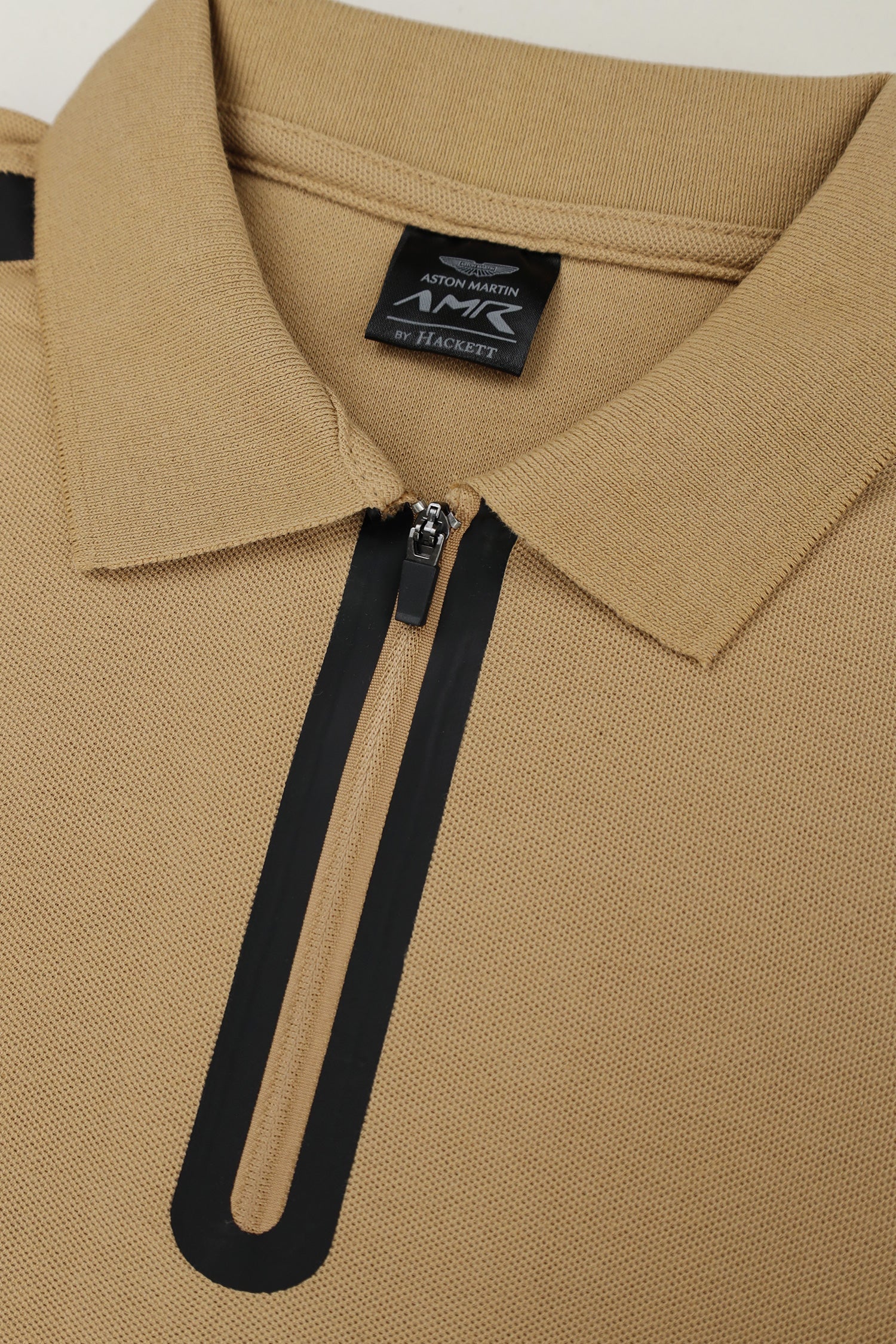 Hackt Lndn AMR Performance Zip-Placket Men's Polo Shirt In Light Camel