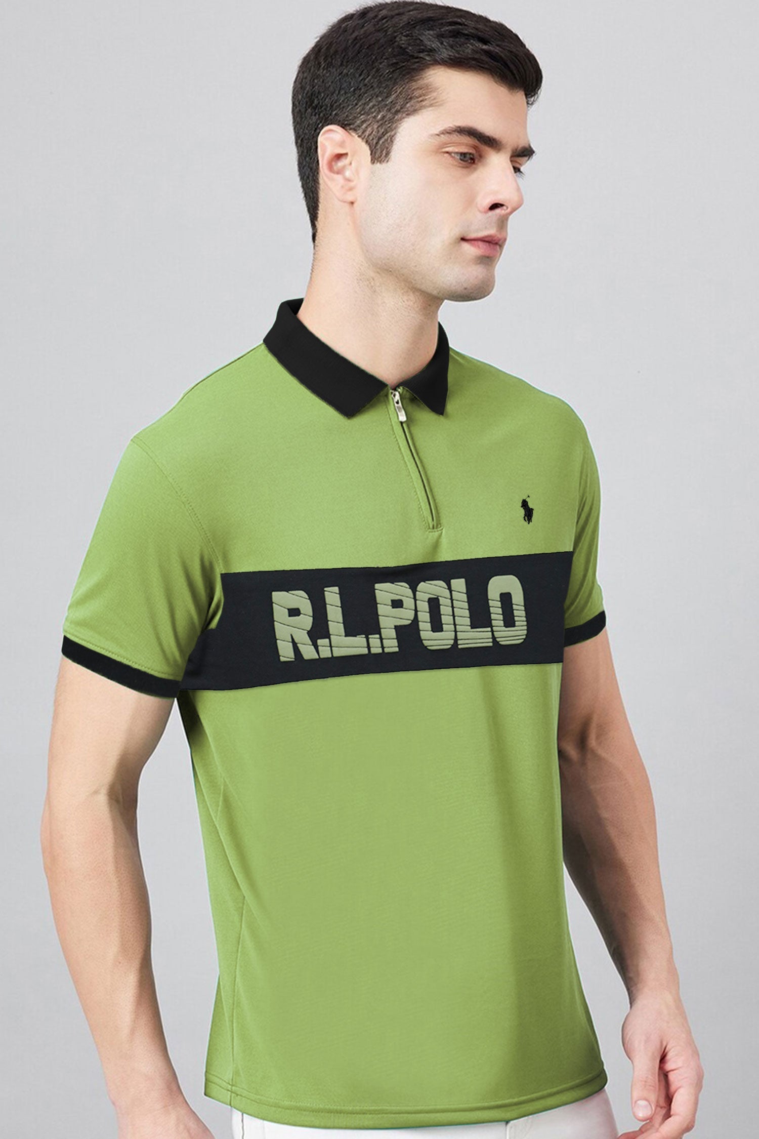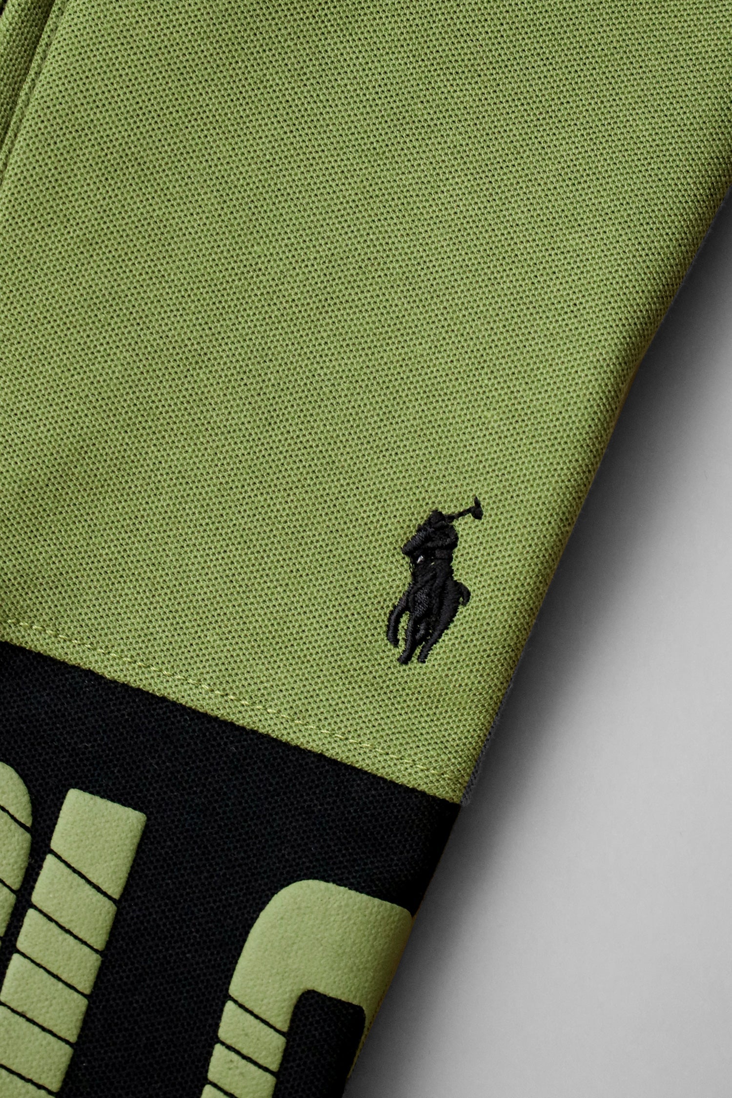Rph Lren Classic Short Striped Zip Style Men's Polo Shirt In Green
