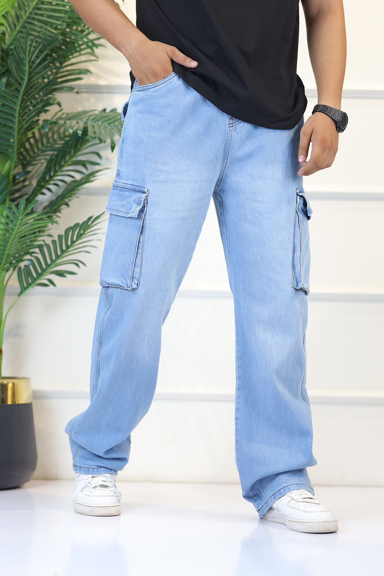 Turbo 7 Pocket Baggy Style Jeans in Sky Blue