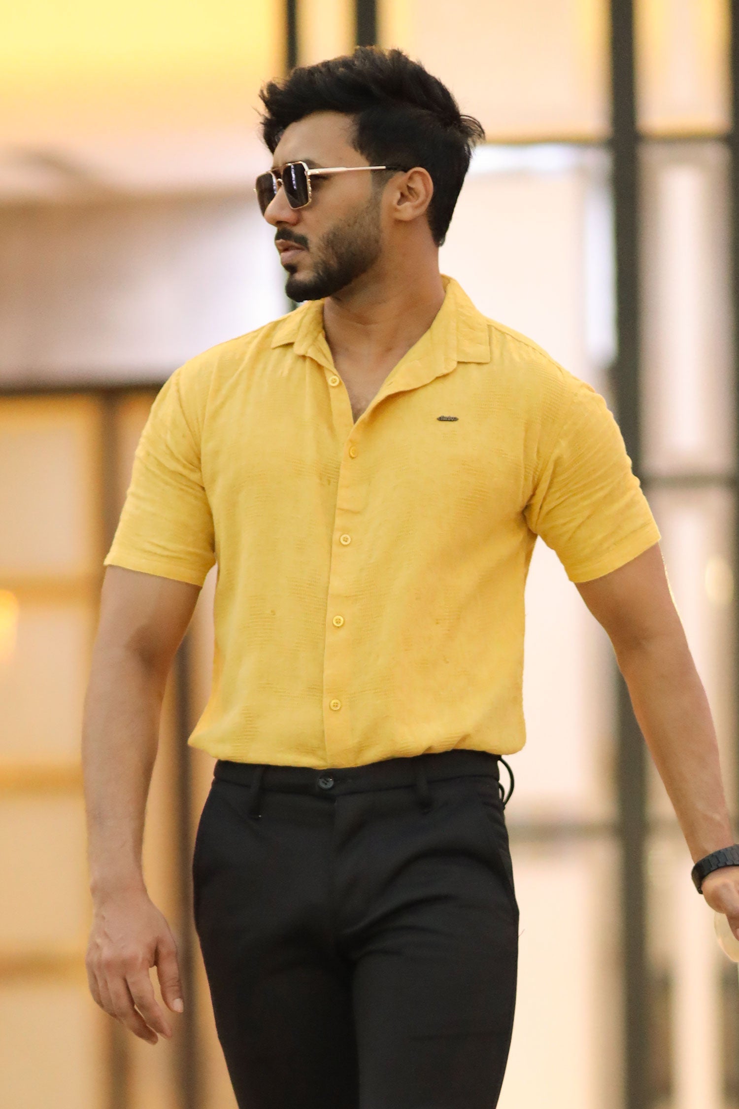 Turbo Artistic Touch Comfort Casual Shirt In Mustard Yellow