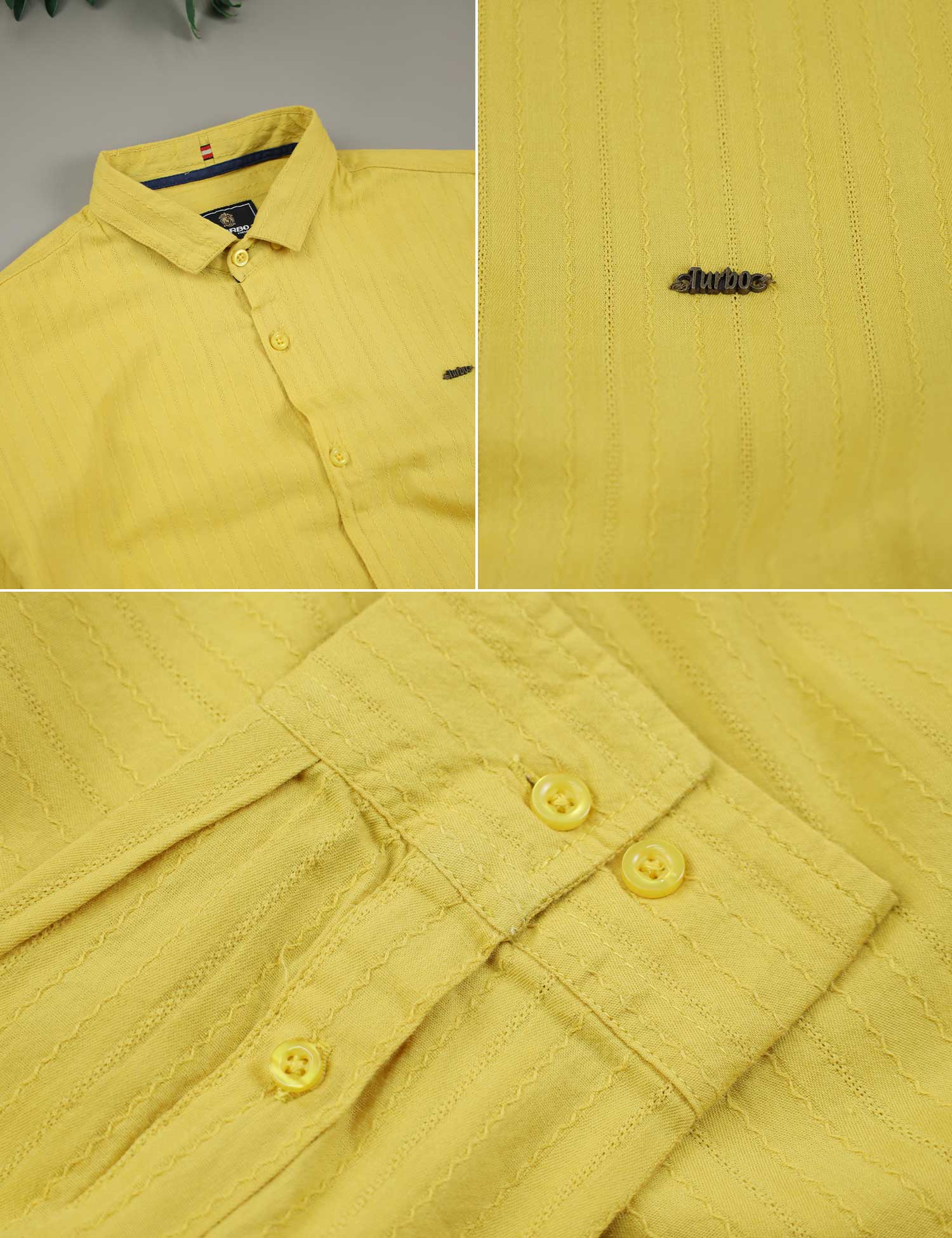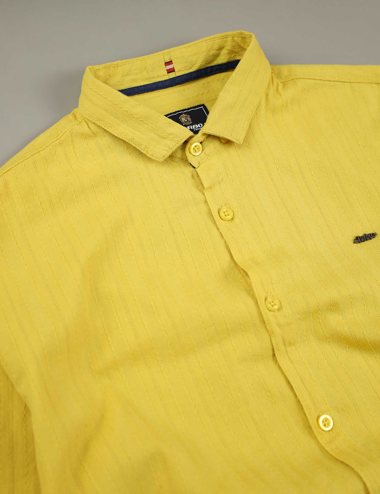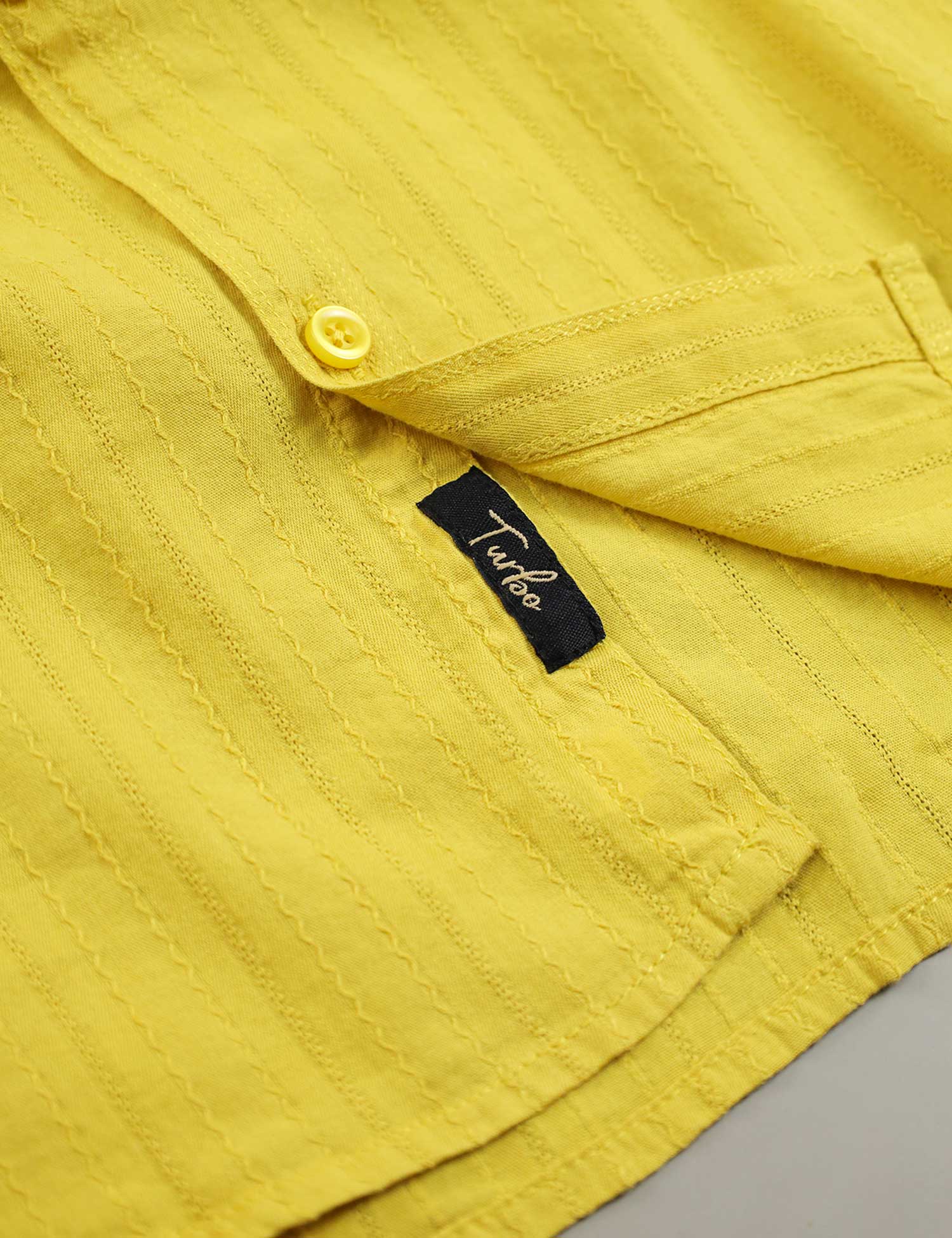Turbo Billy Textured Knit Long Sleeve Cotton Casual Shirt In Yellow