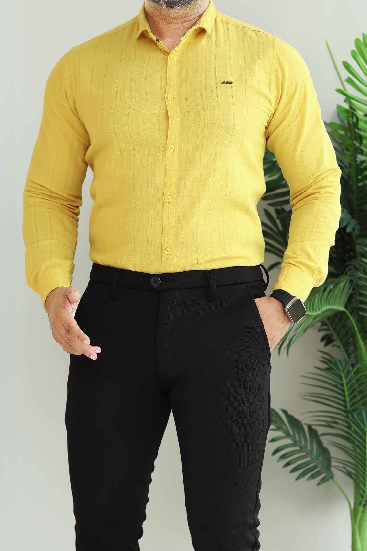 Turbo Billy Textured Knit Long Sleeve Cotton Casual Shirt In Yellow