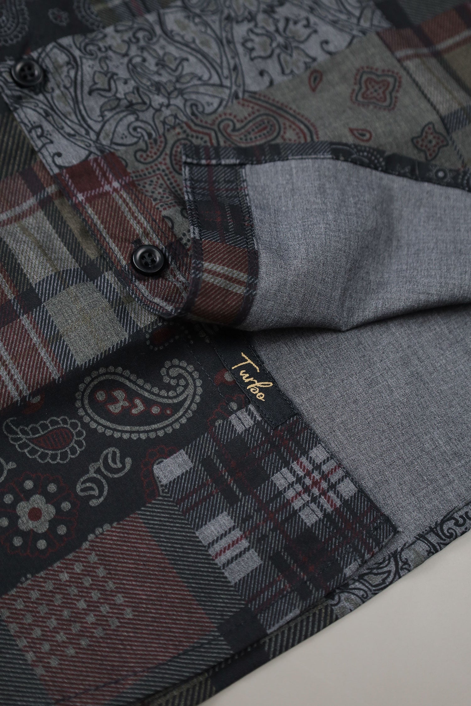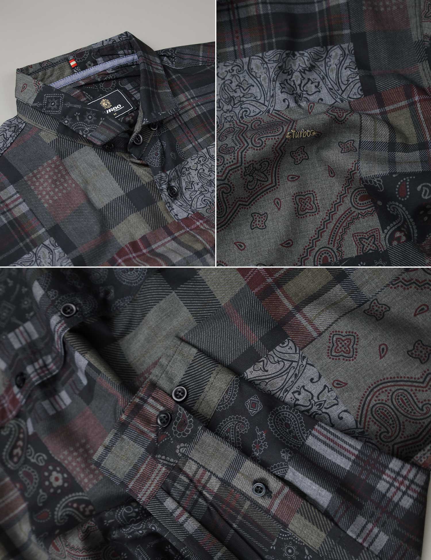 Turbo Checkered Crown Long Sleeve Cotton Casual Shirt In Charcoal Black