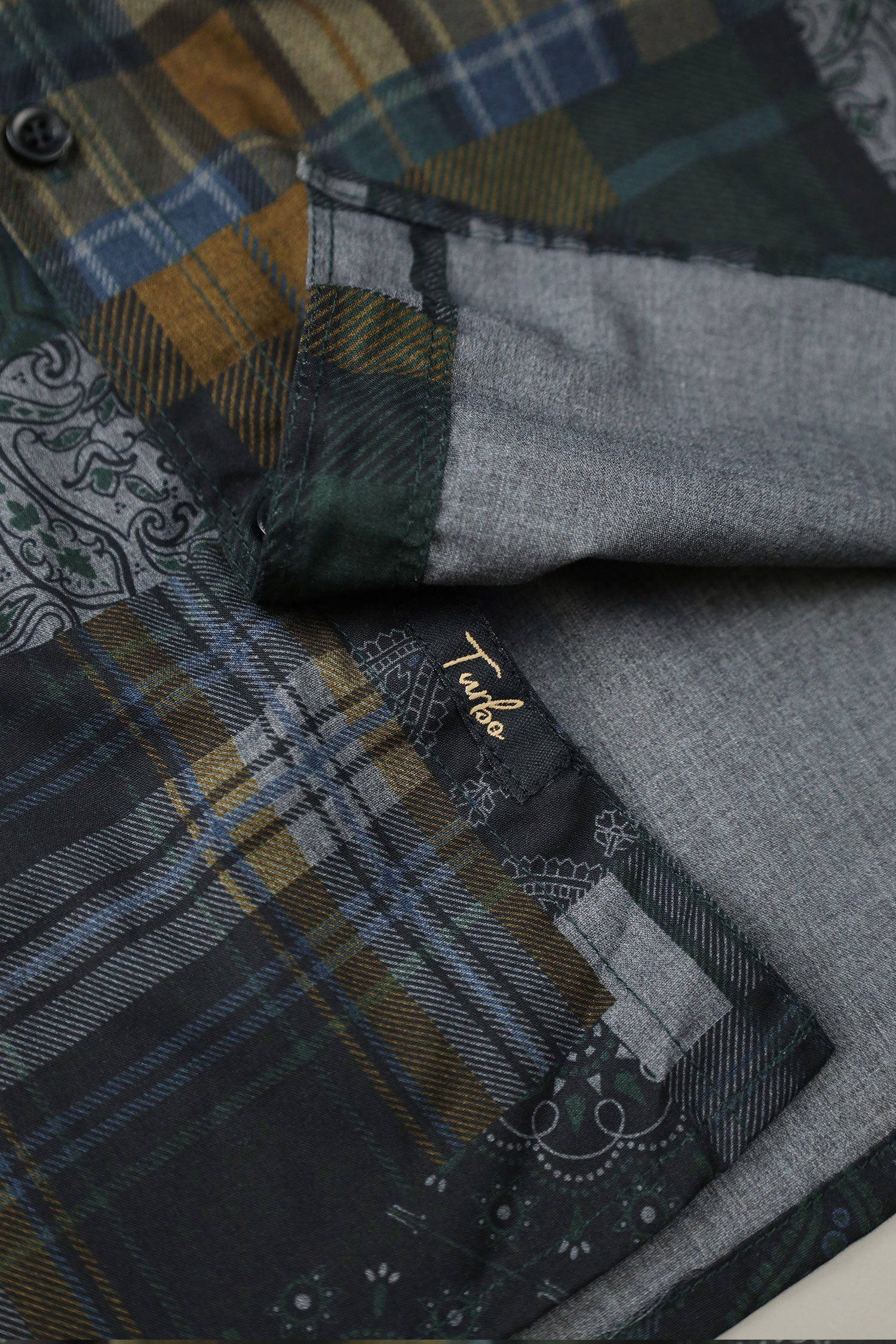 Turbo Checkered Crown Long Sleeve Cotton Casual Shirt In Dark Green