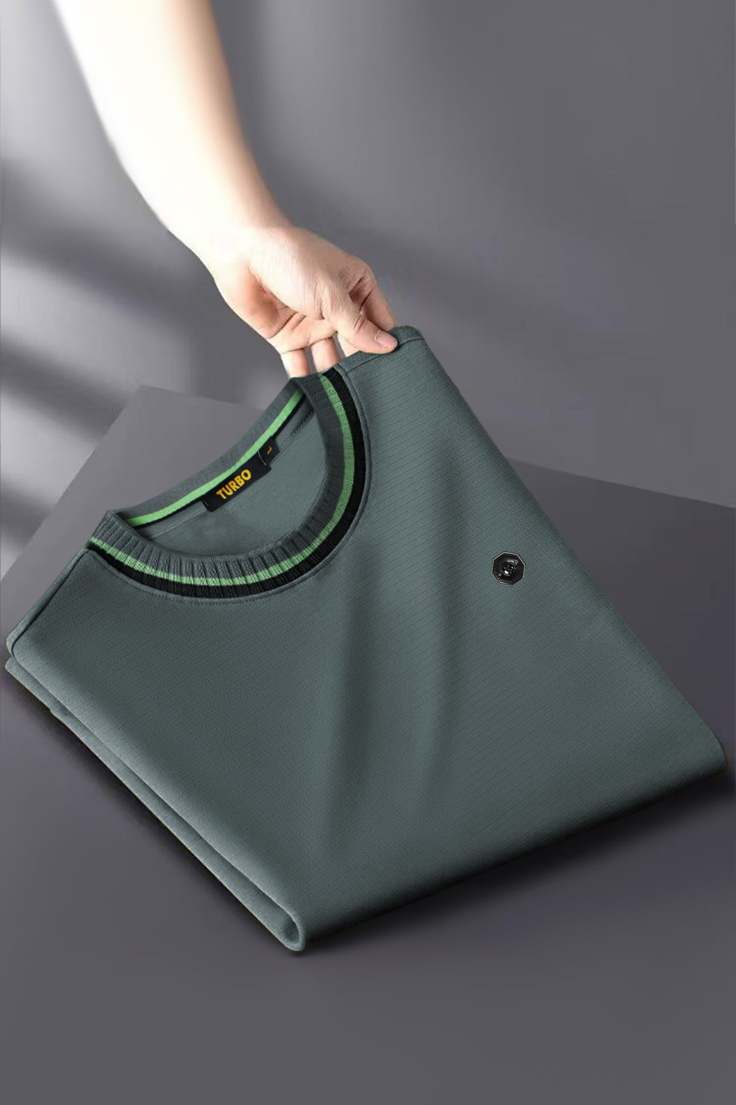Turbo Contrast Tipping Crew Neck Tee In Dark Grey