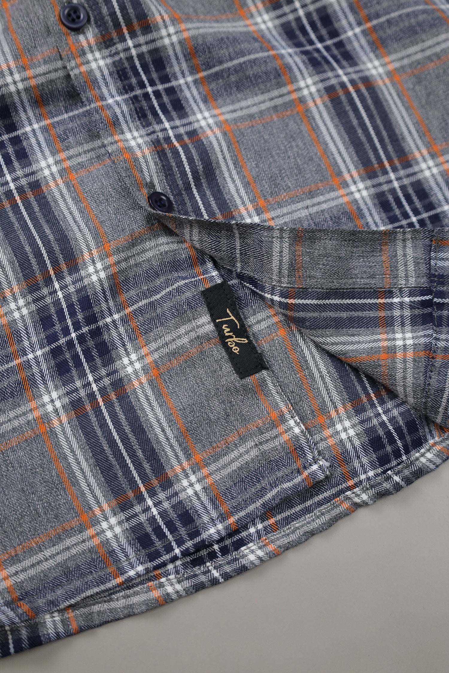 Turbo Cubix Checks Long Sleeve Cotton Casual Shirt In Grey