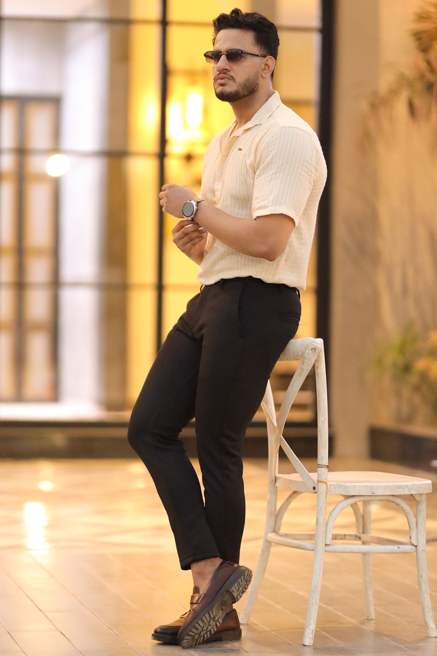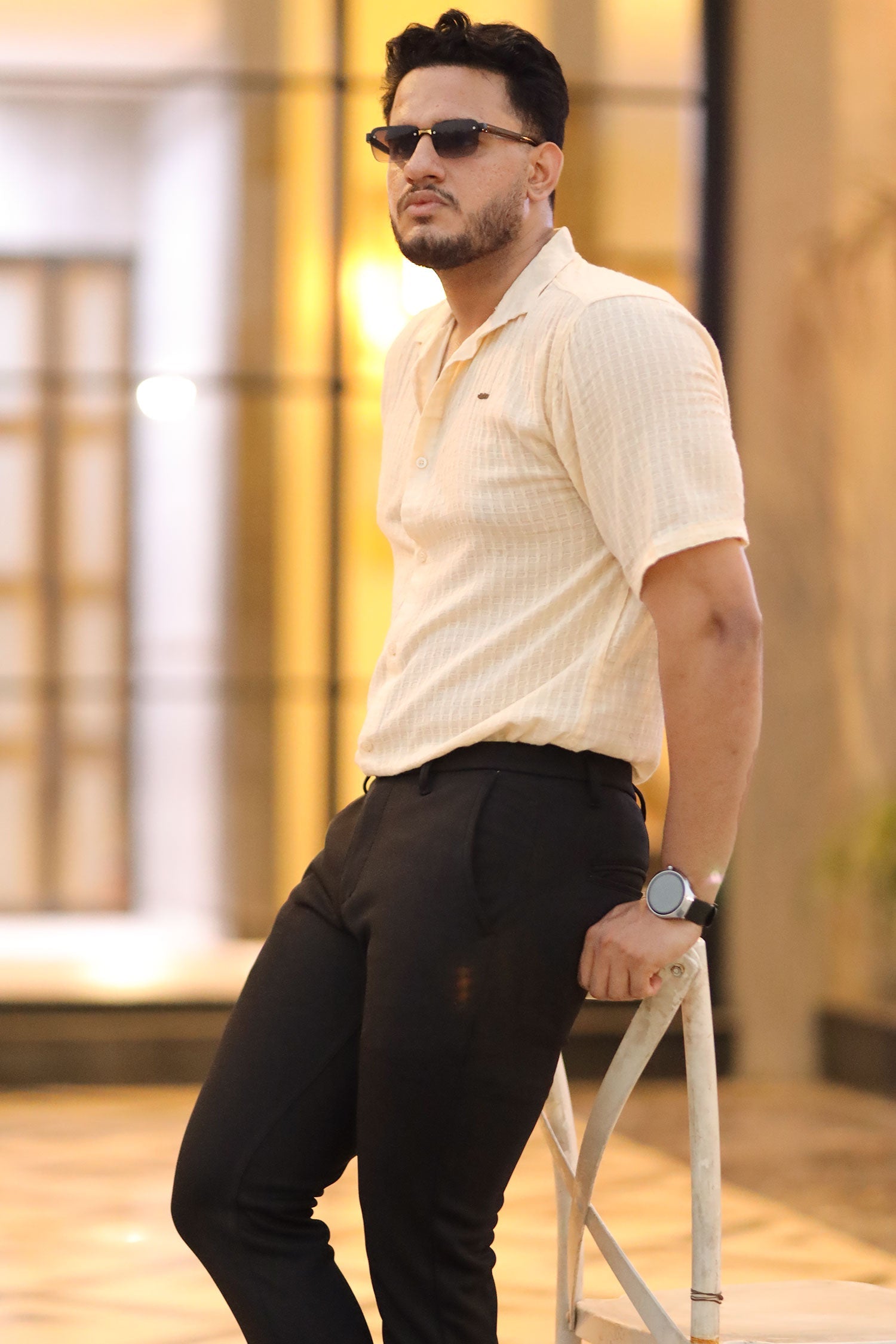 Turbo Designer Motif Embossed Casual Shirt In Light Lemon