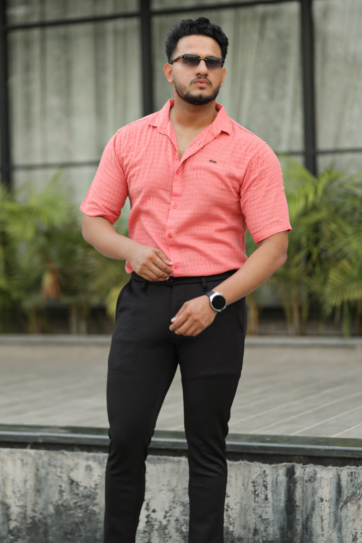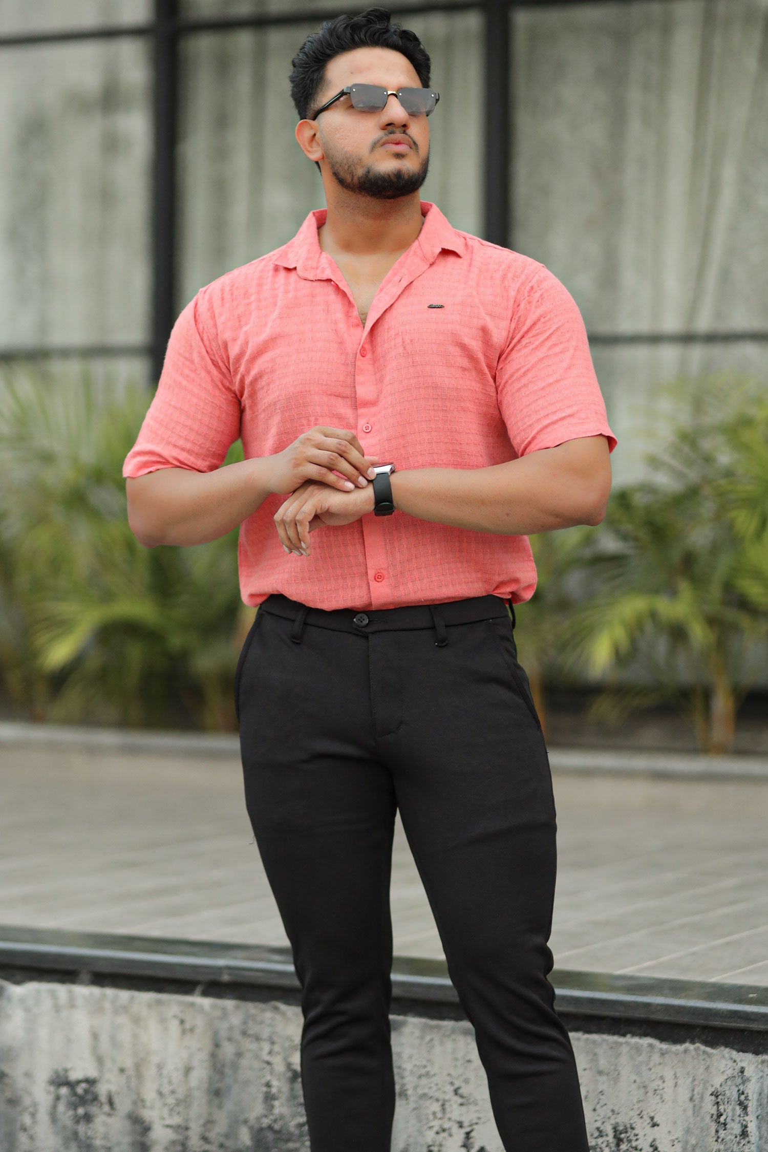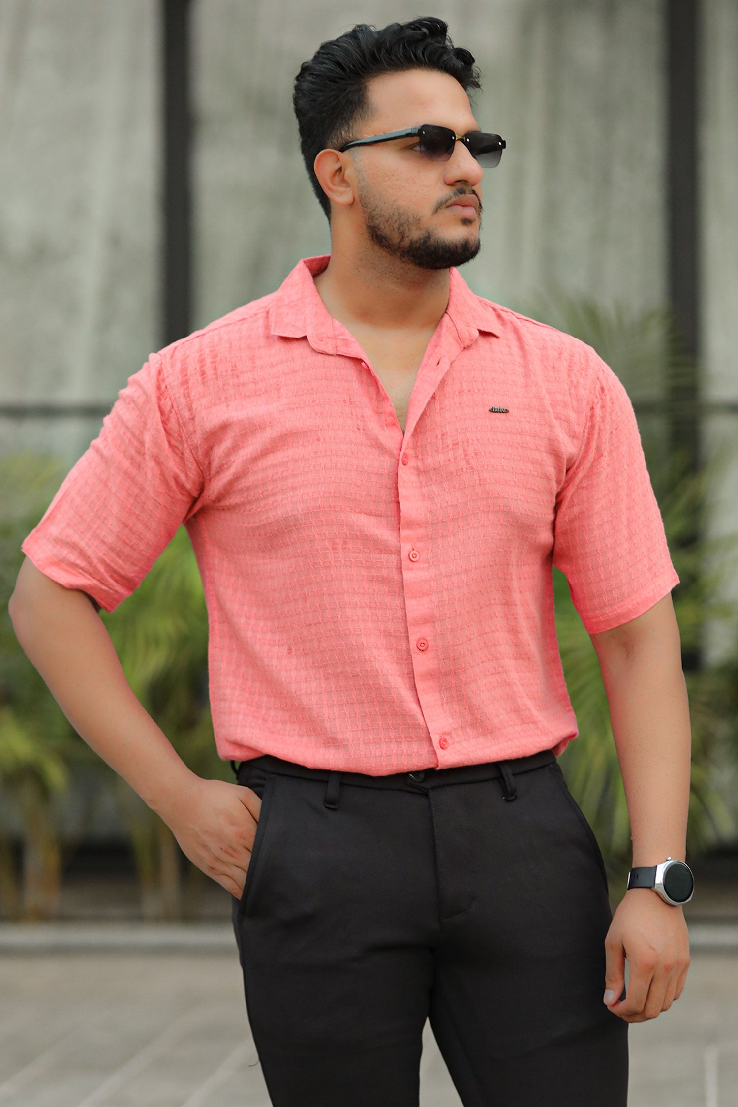 Turbo Designer Motif Embossed Casual Shirt In Pastel Pink