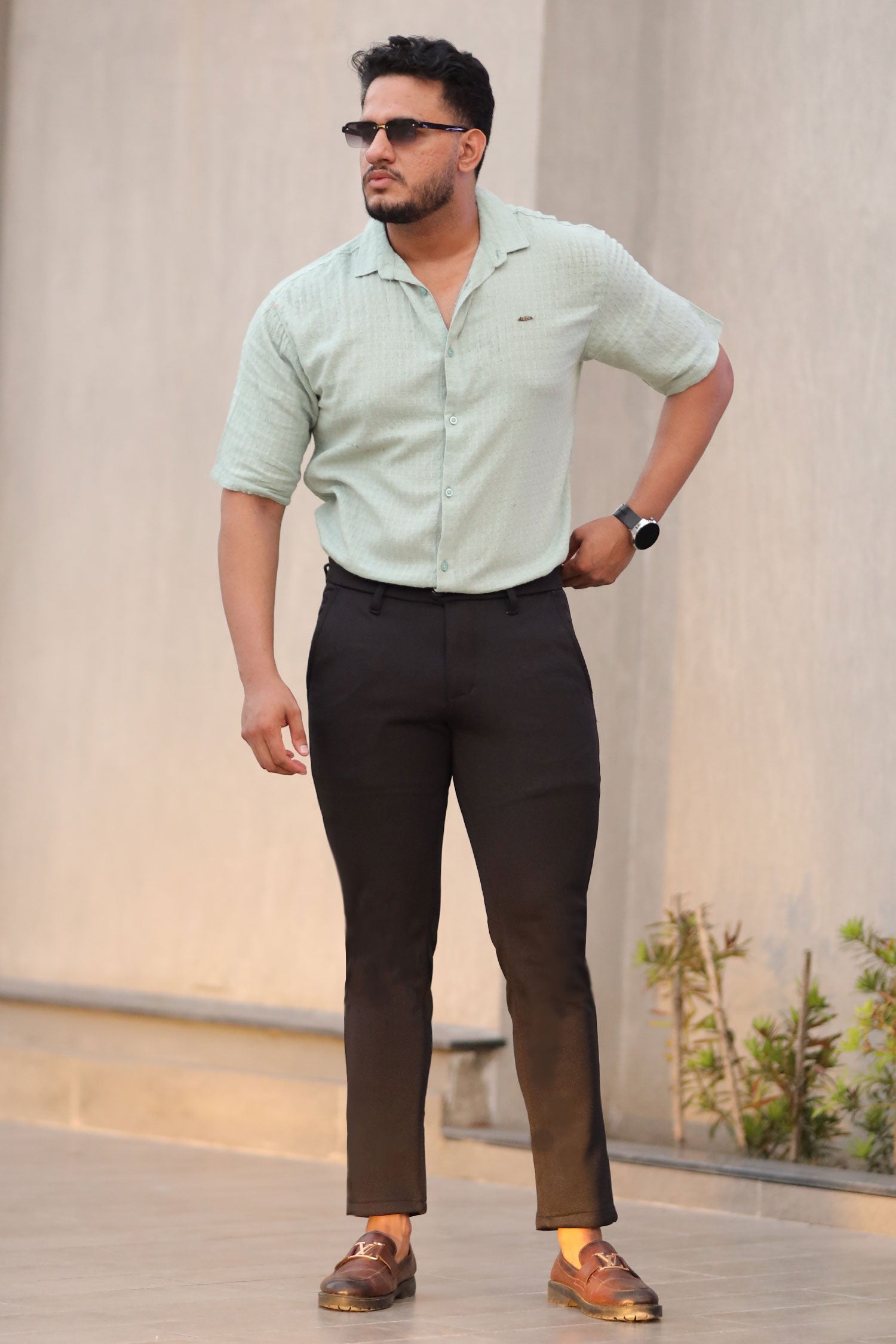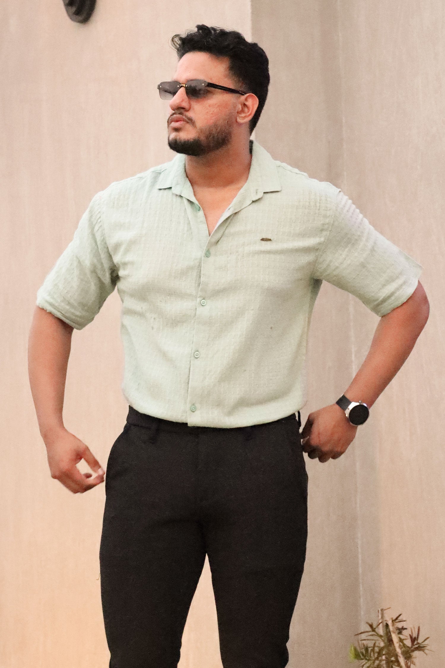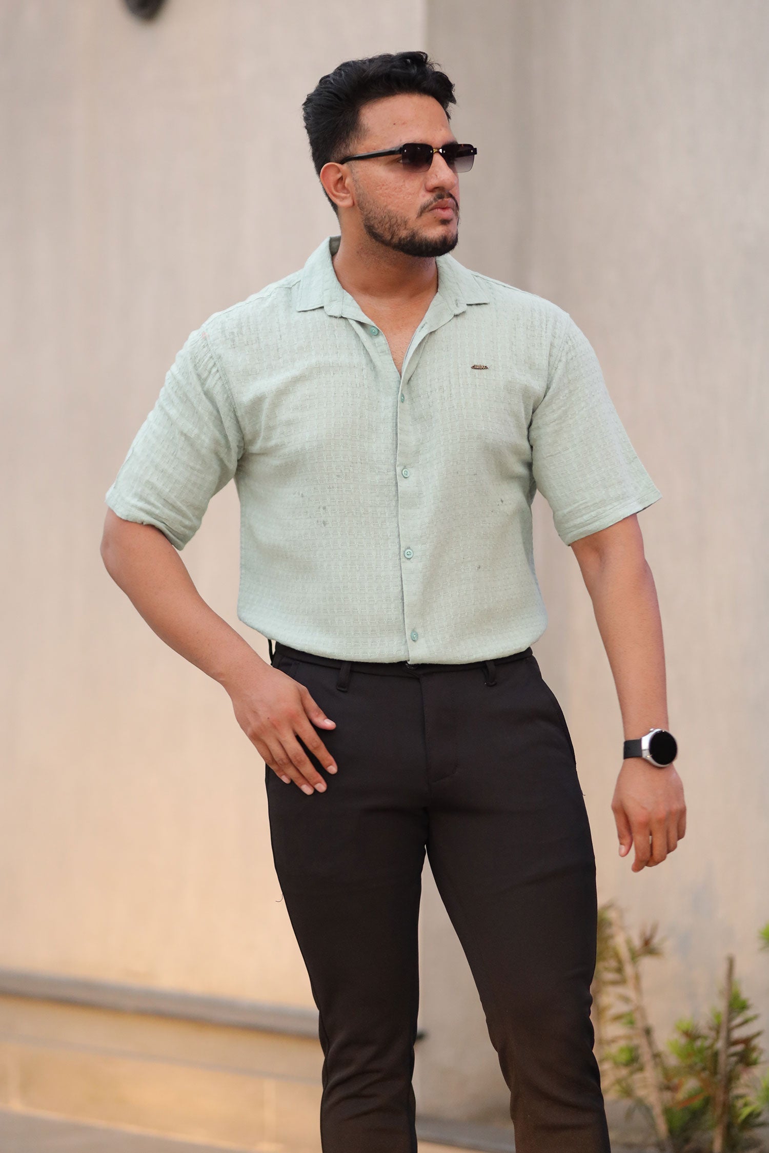 Turbo Designer Motif Embossed Casual Shirt In Sea Foam