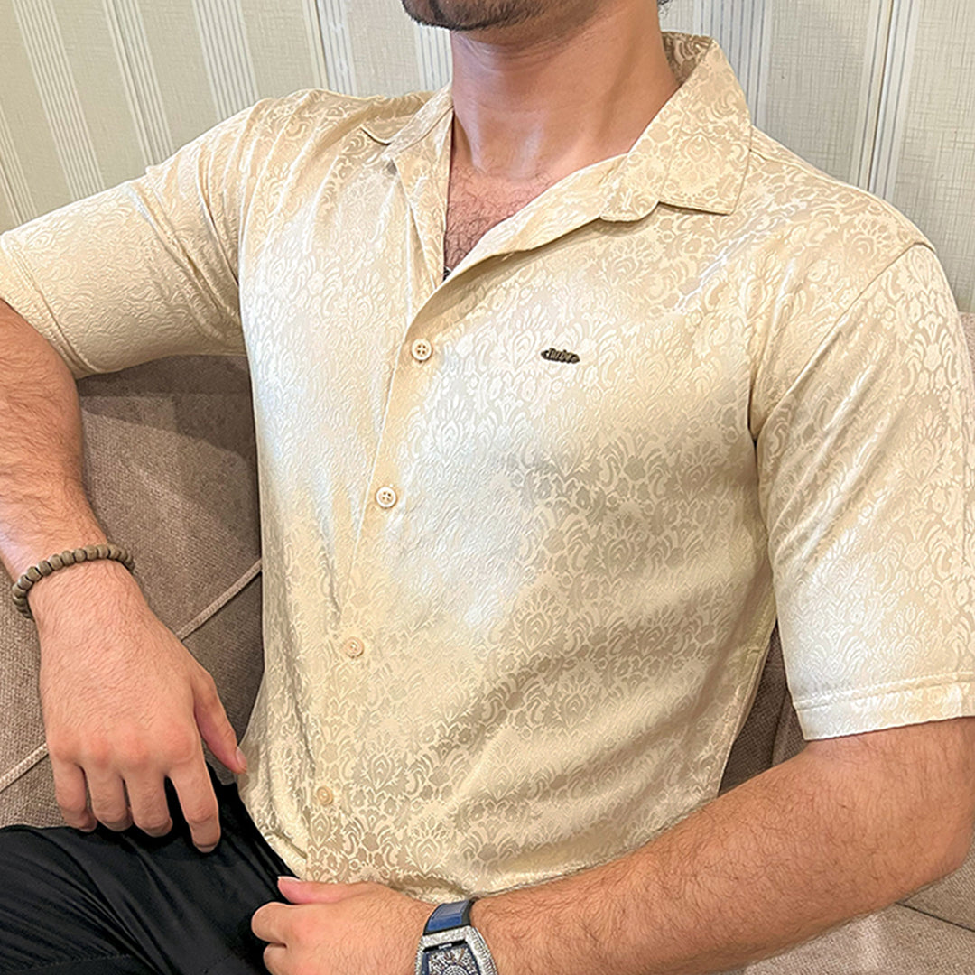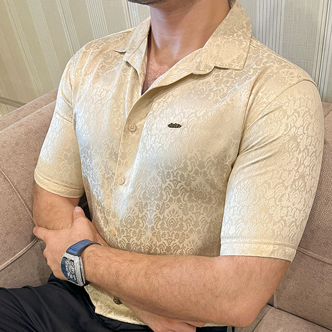 Turbo Designer Motif Floral Casual Shirt In Creem