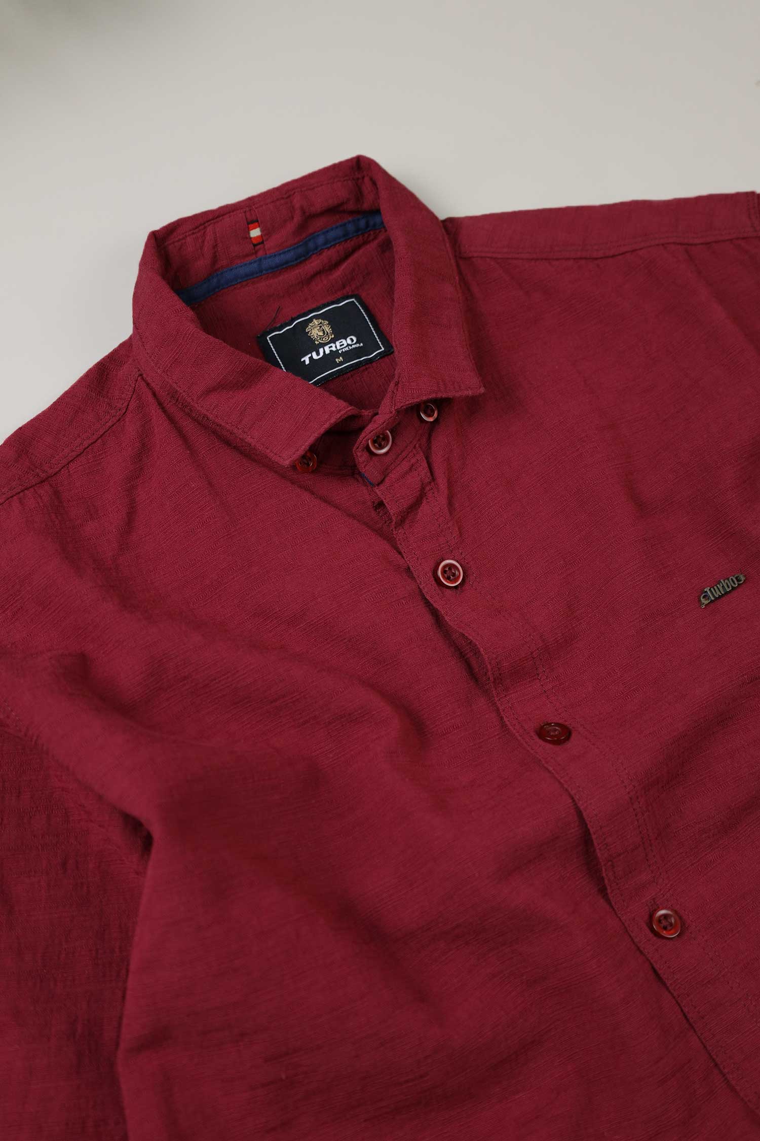 Turbo Dobby Textured Long Sleeve Cotton Casual Shirt In Maroon