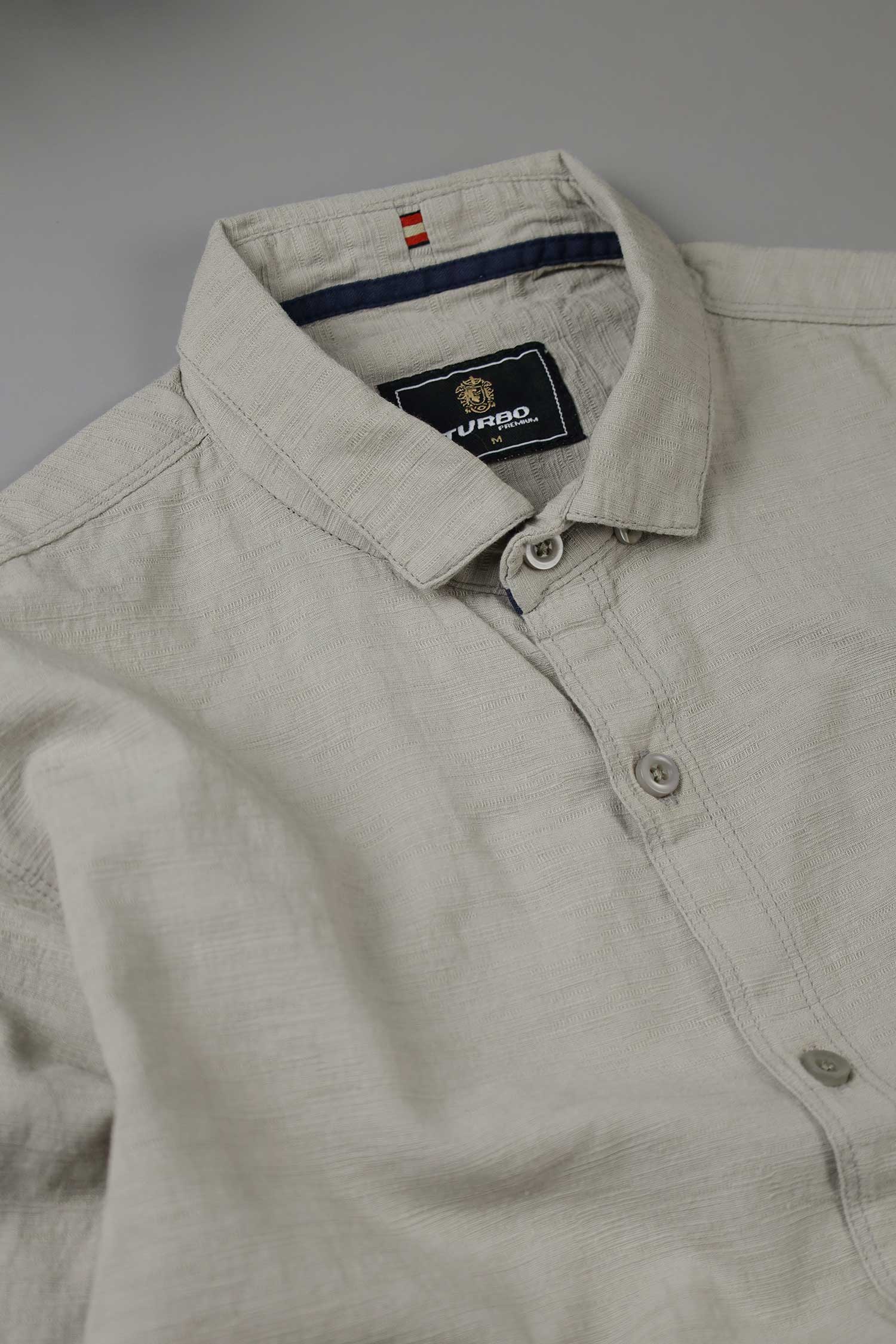 Turbo Dobby Textured Long Sleeve Cotton Casual Shirt In Slate Grey