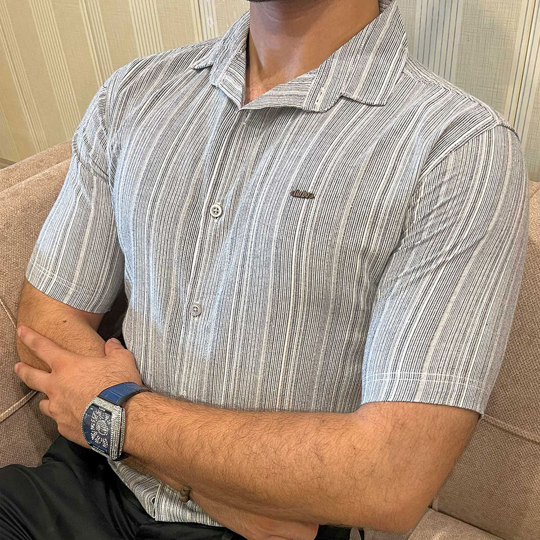 Turbo Down Box Collared Casual Shirt In Slate Grey