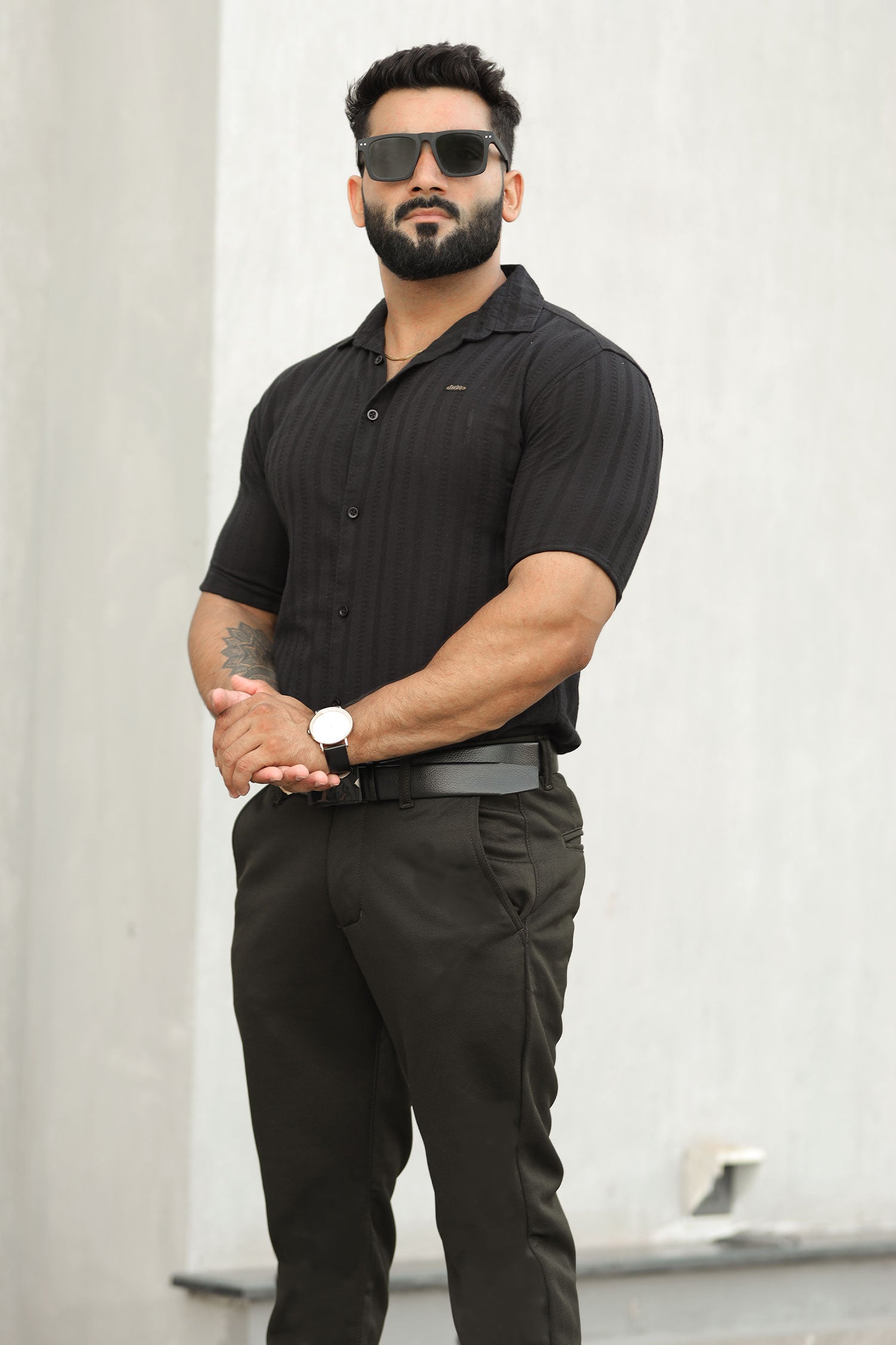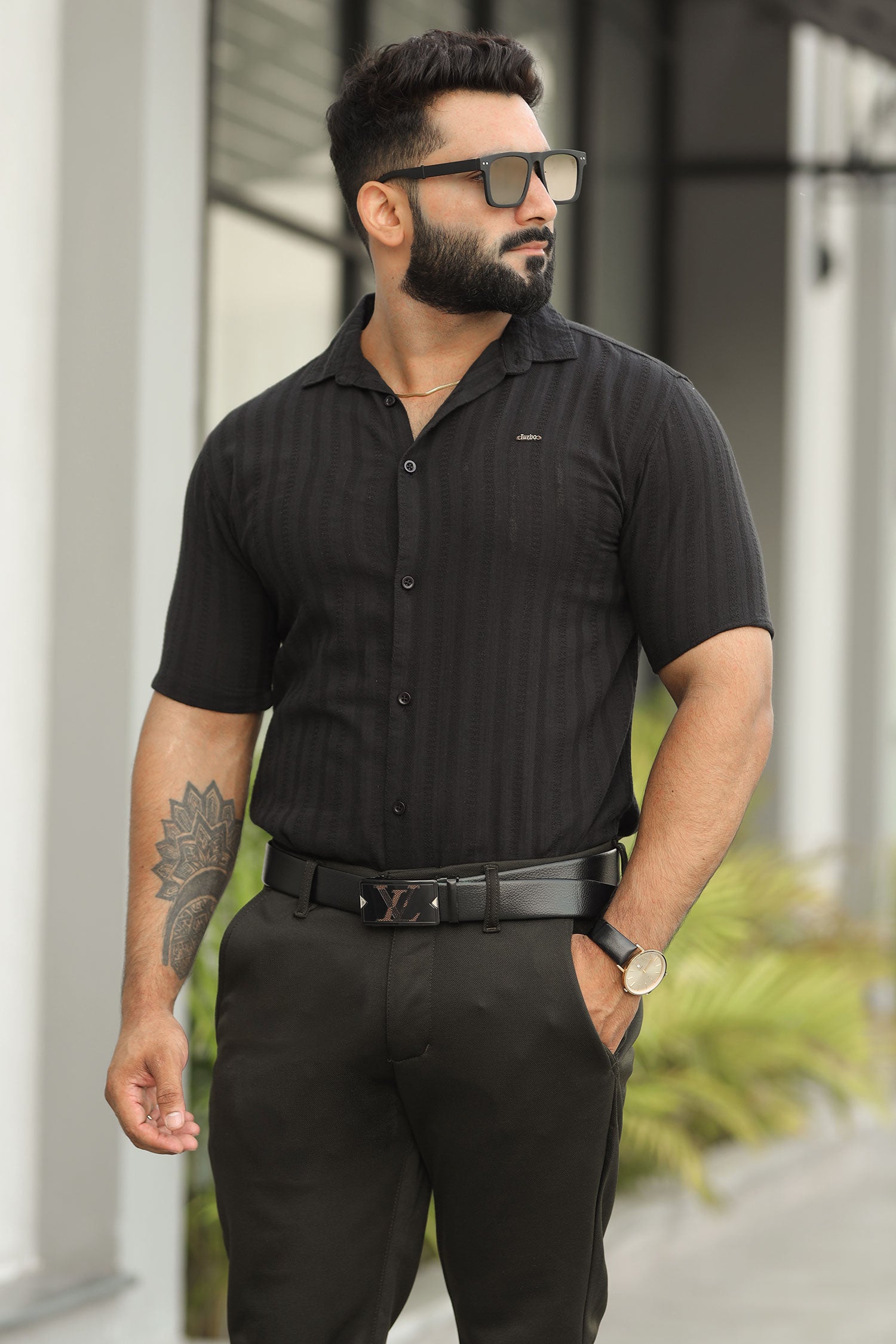 Turbo Endless Cool Embossed Casual Shirt In Black
