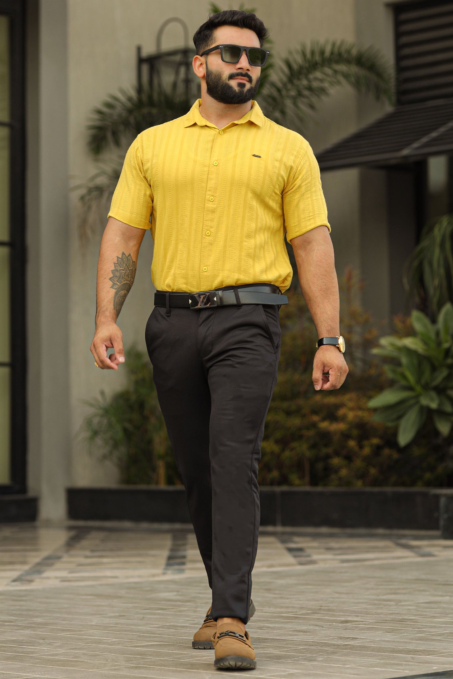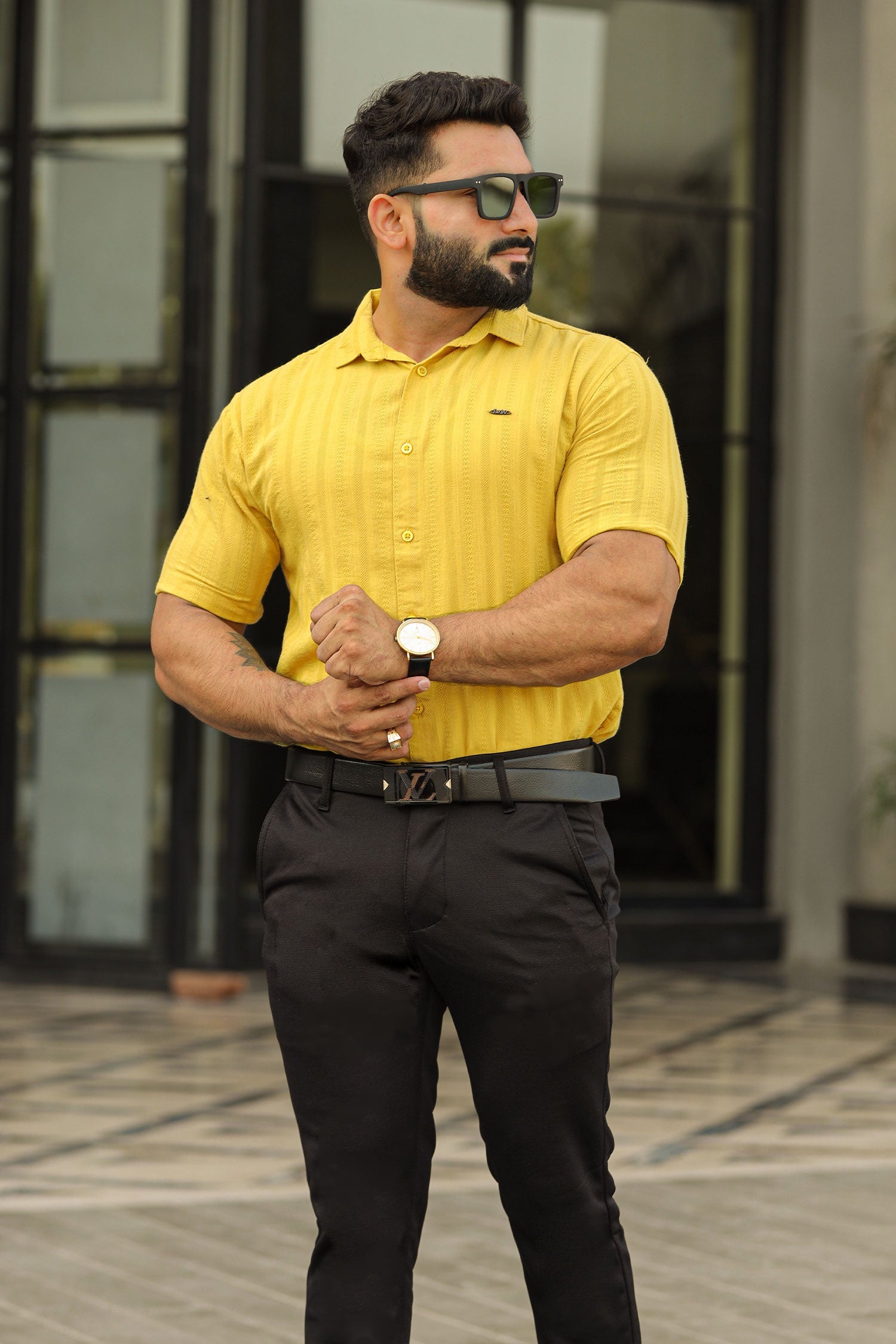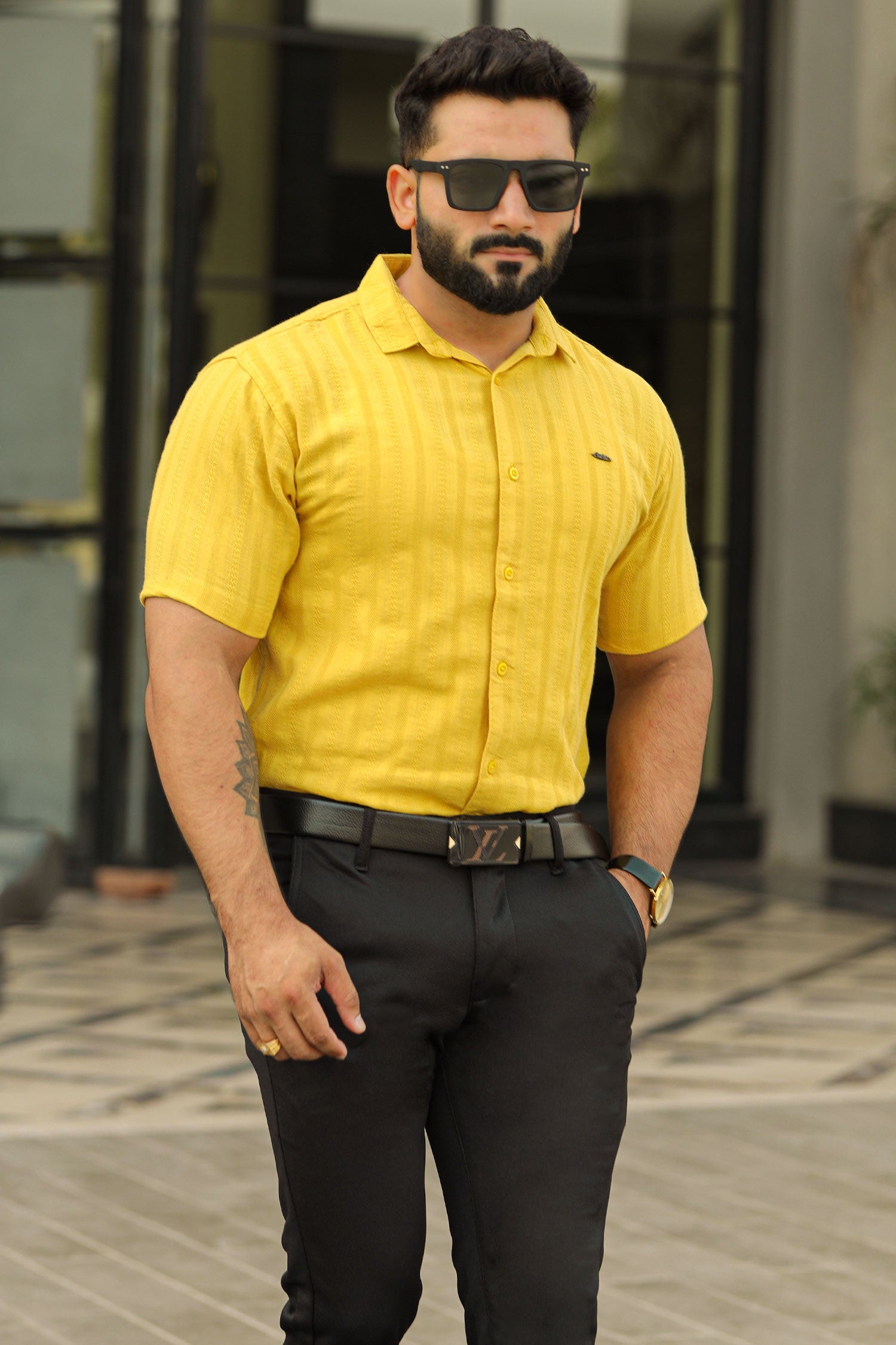 Turbo Endless Cool Embossed Casual Shirt In Mustard