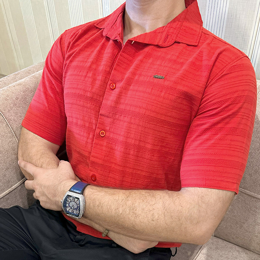 Turbo Knit Craft Crochet Casual Shirt In Red