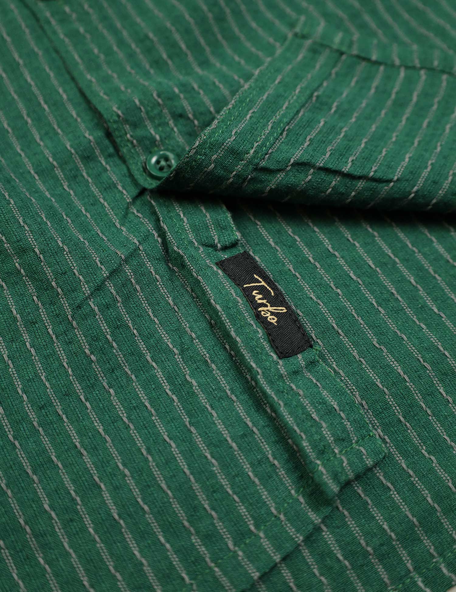 Turbo Lining Check Creation Long Sleeve Cotton Casual Shirt In Green