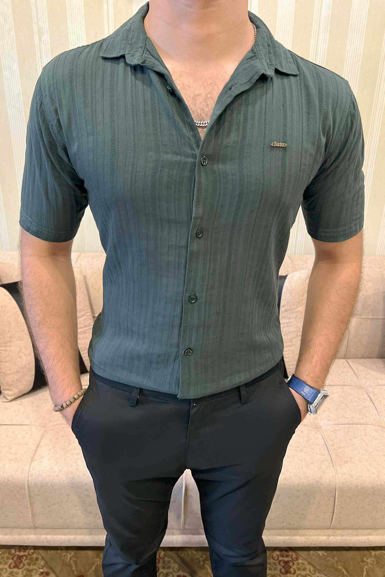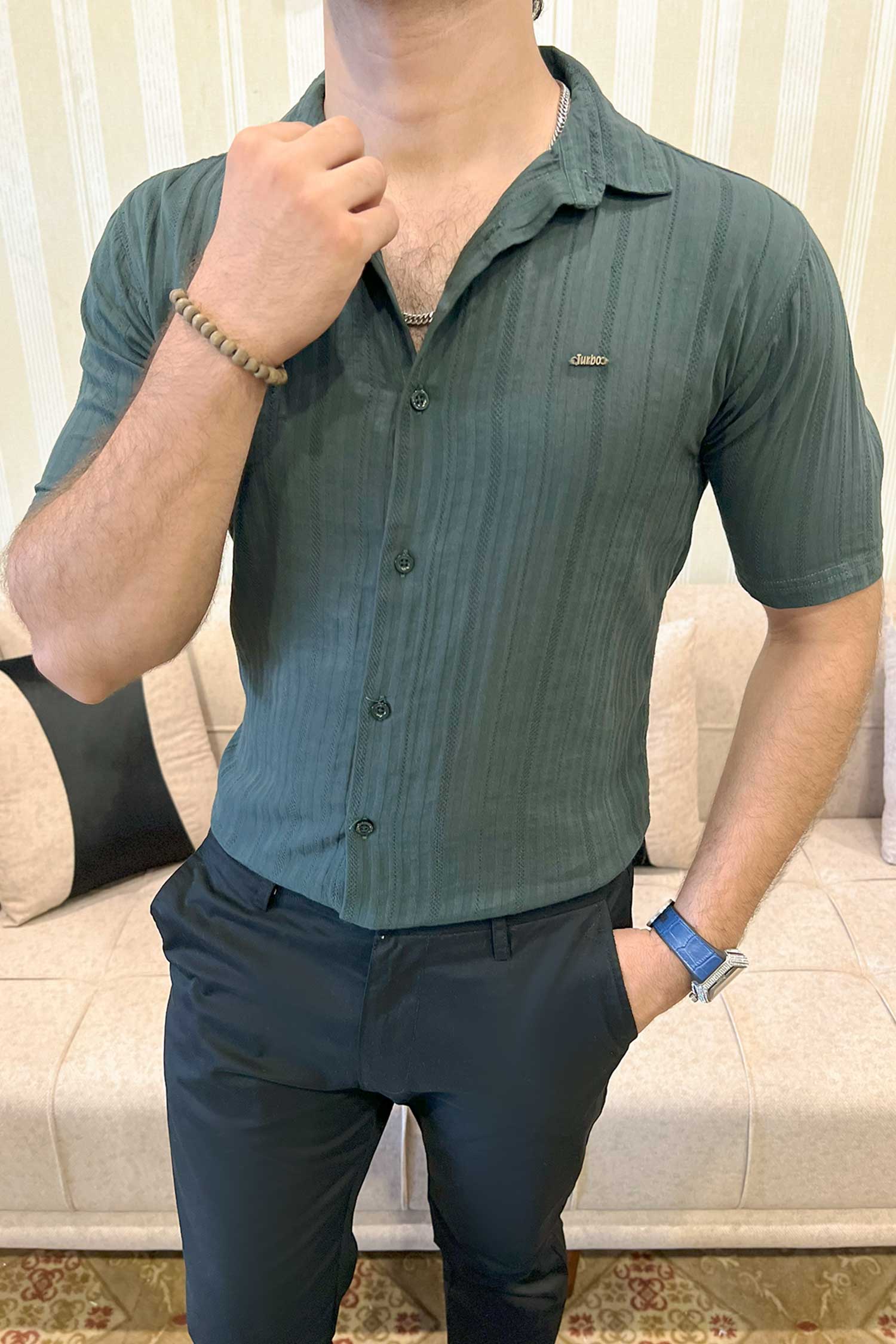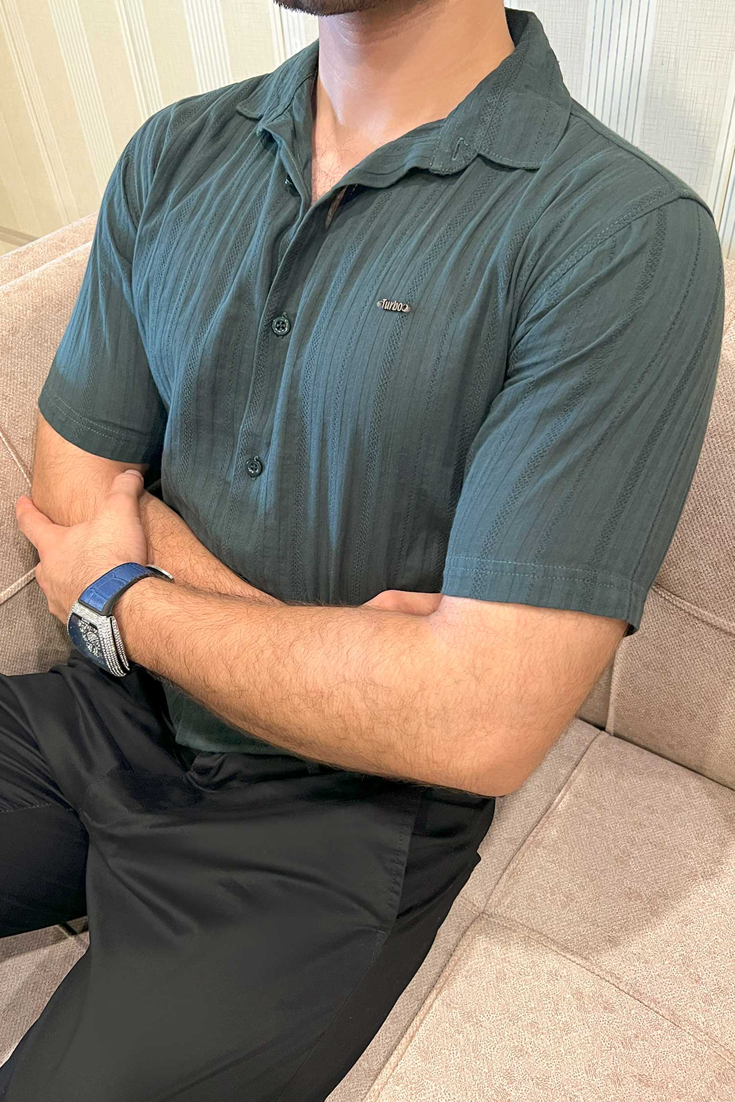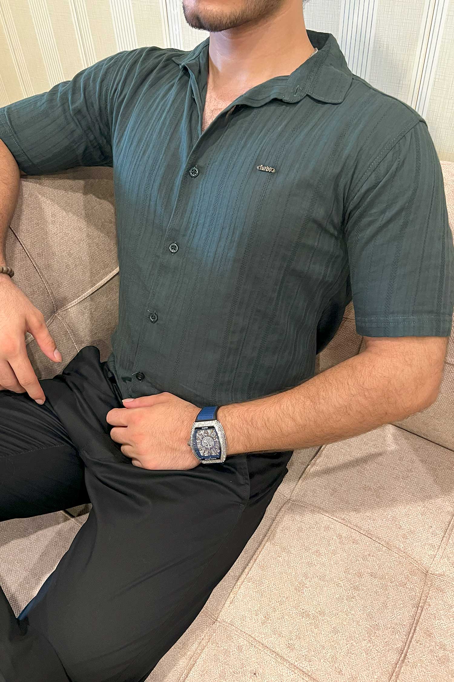 Turbo Minimalist Design Half Sleeve Casual Shirt In Dark Green