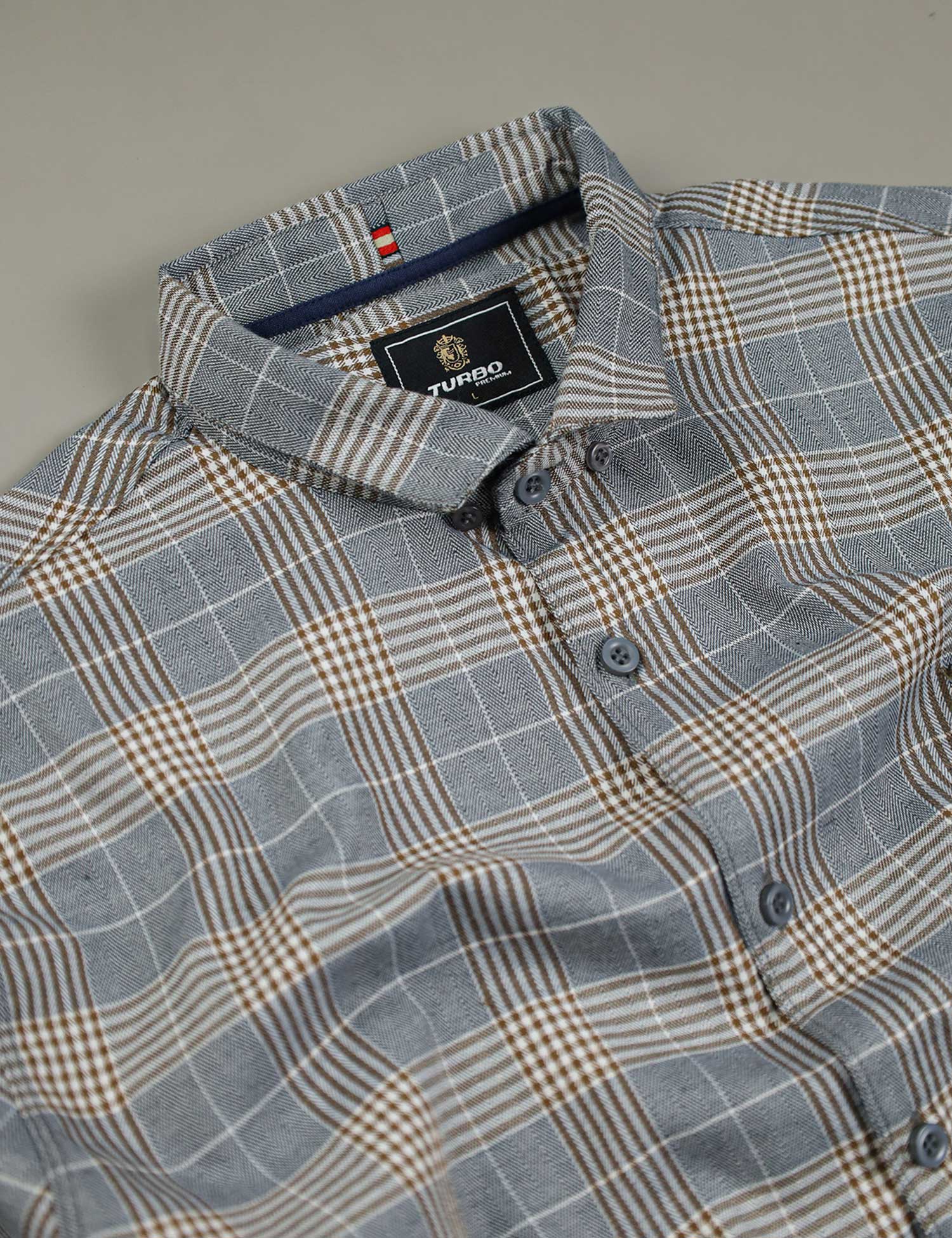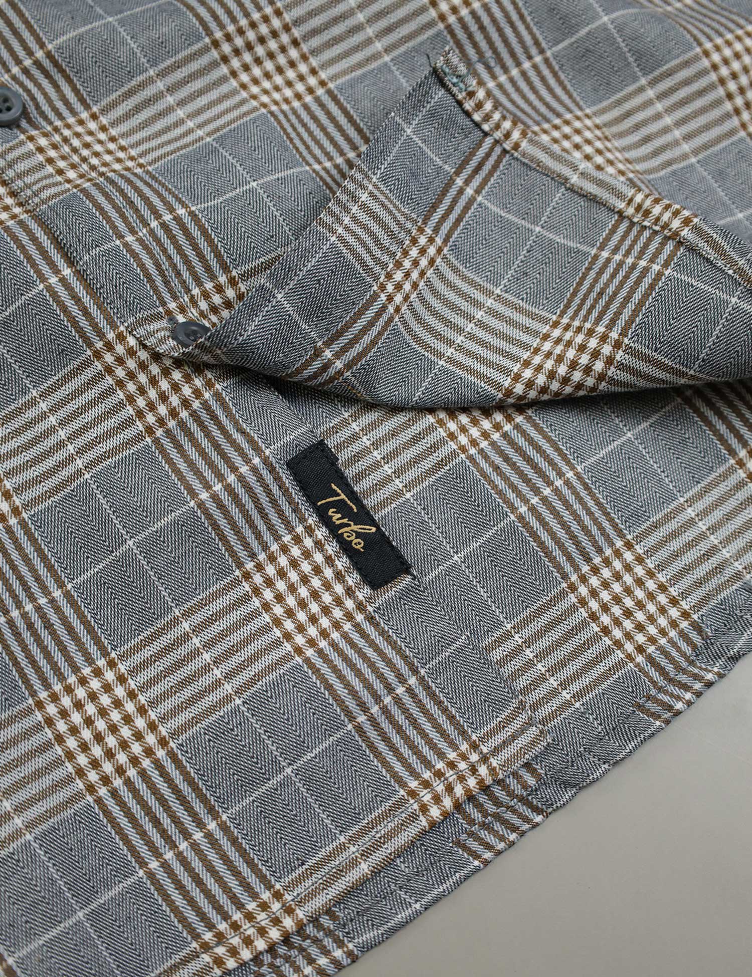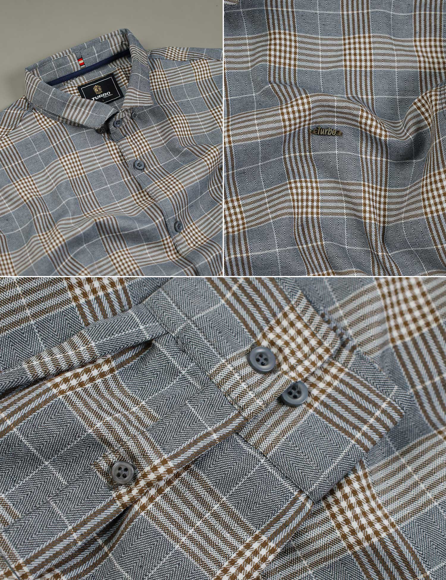 Turbo Plaid Pattern Creation Long Sleeve Cotton Casual Shirt In Grey