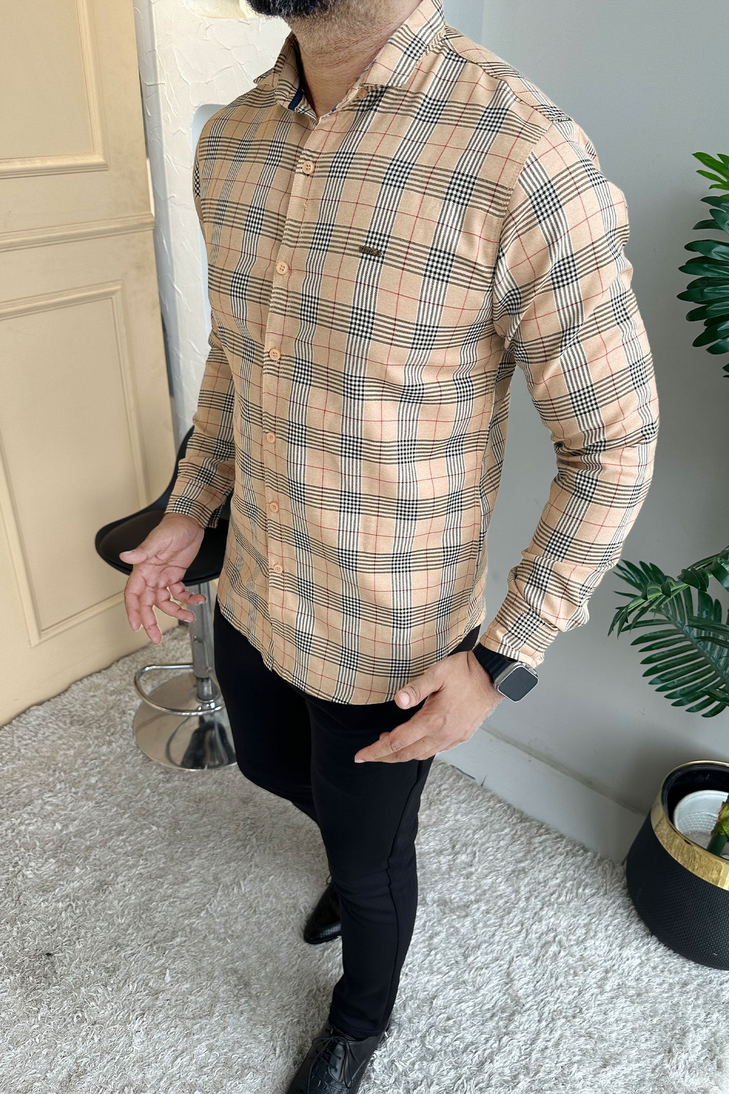 Turbo Plaid Pattern Creation Long Sleeve Cotton Casual Shirt In Light Skin