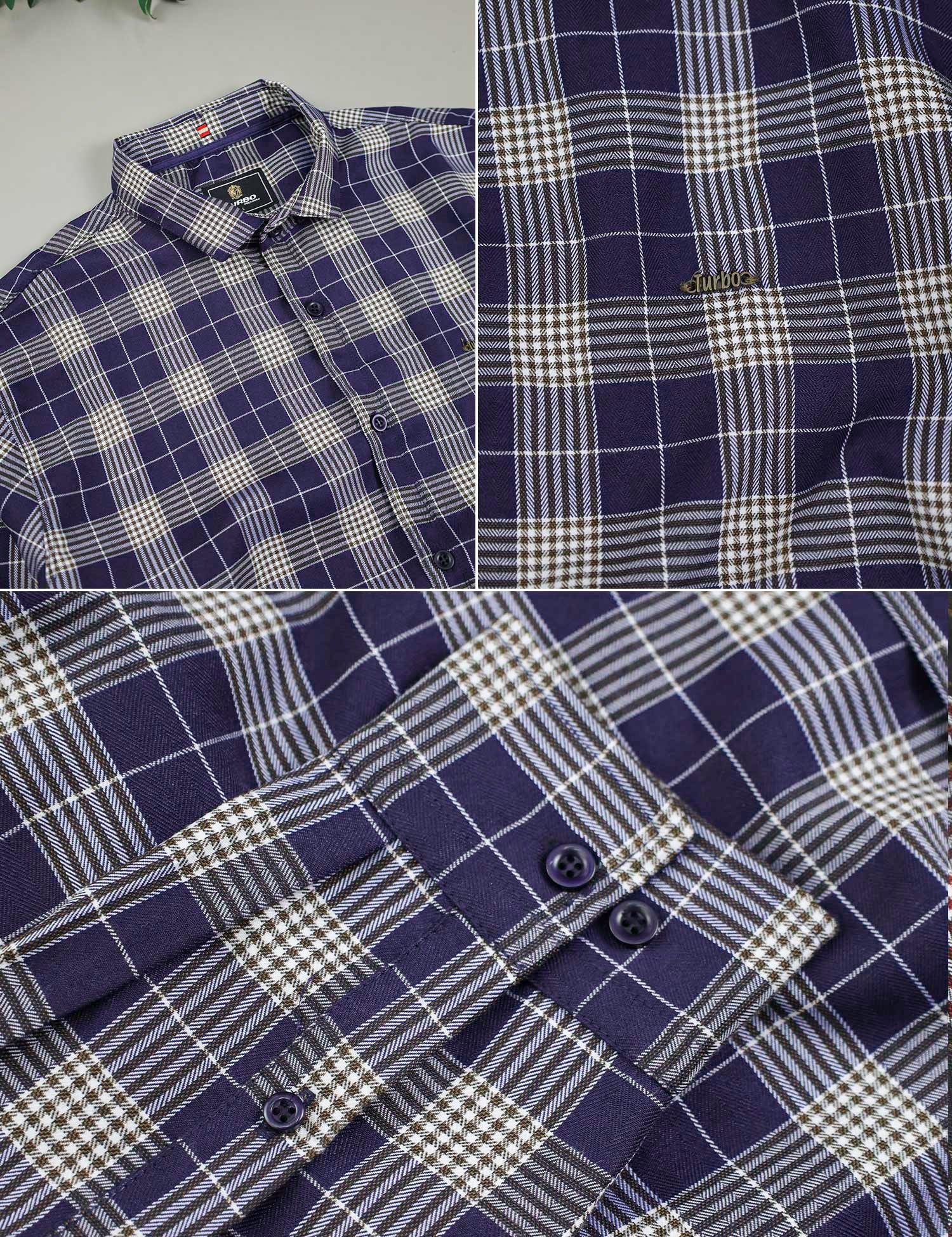 Turbo Plaid Pattern Creation Long Sleeve Cotton Casual Shirt In Navy Blue