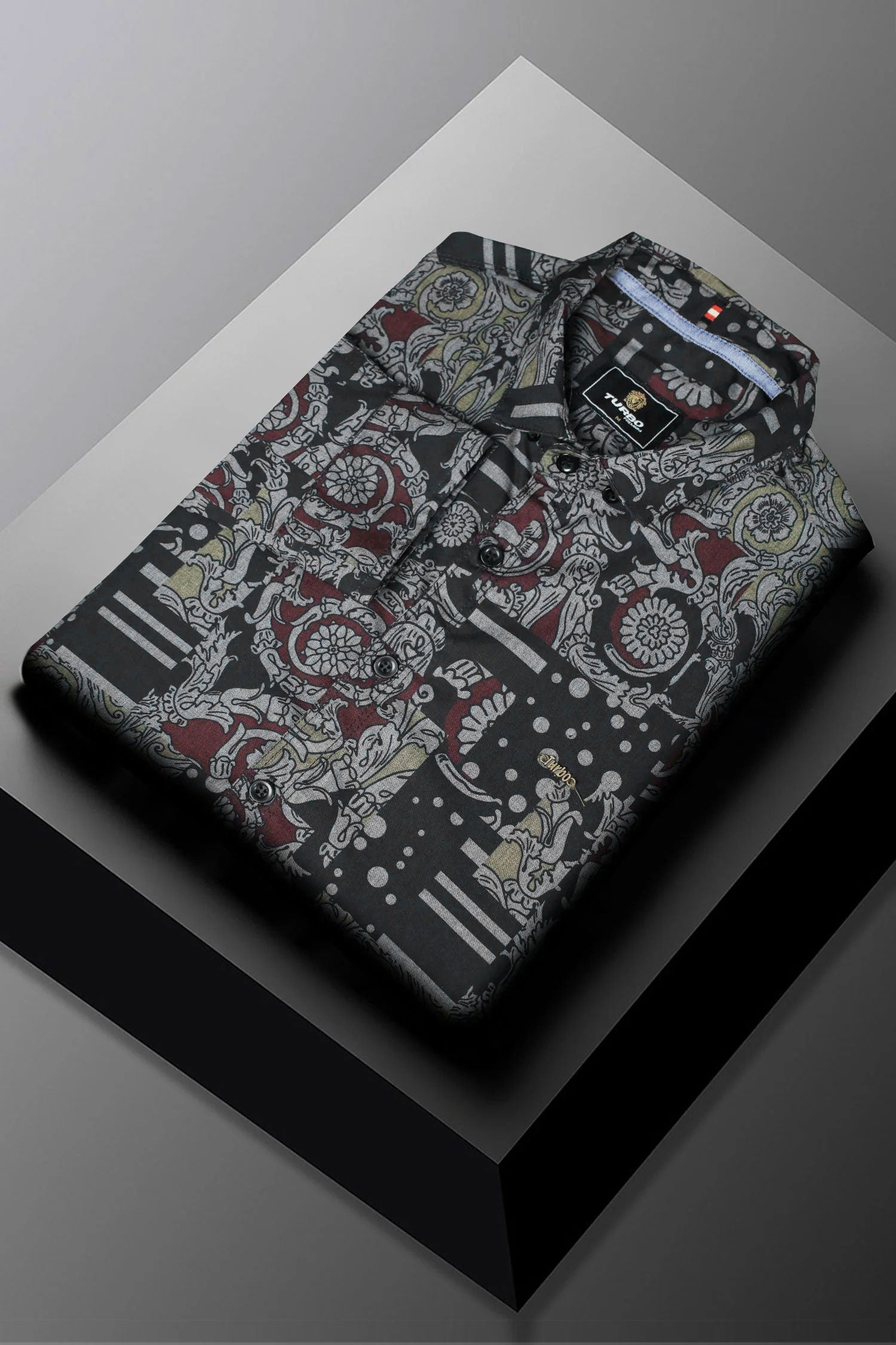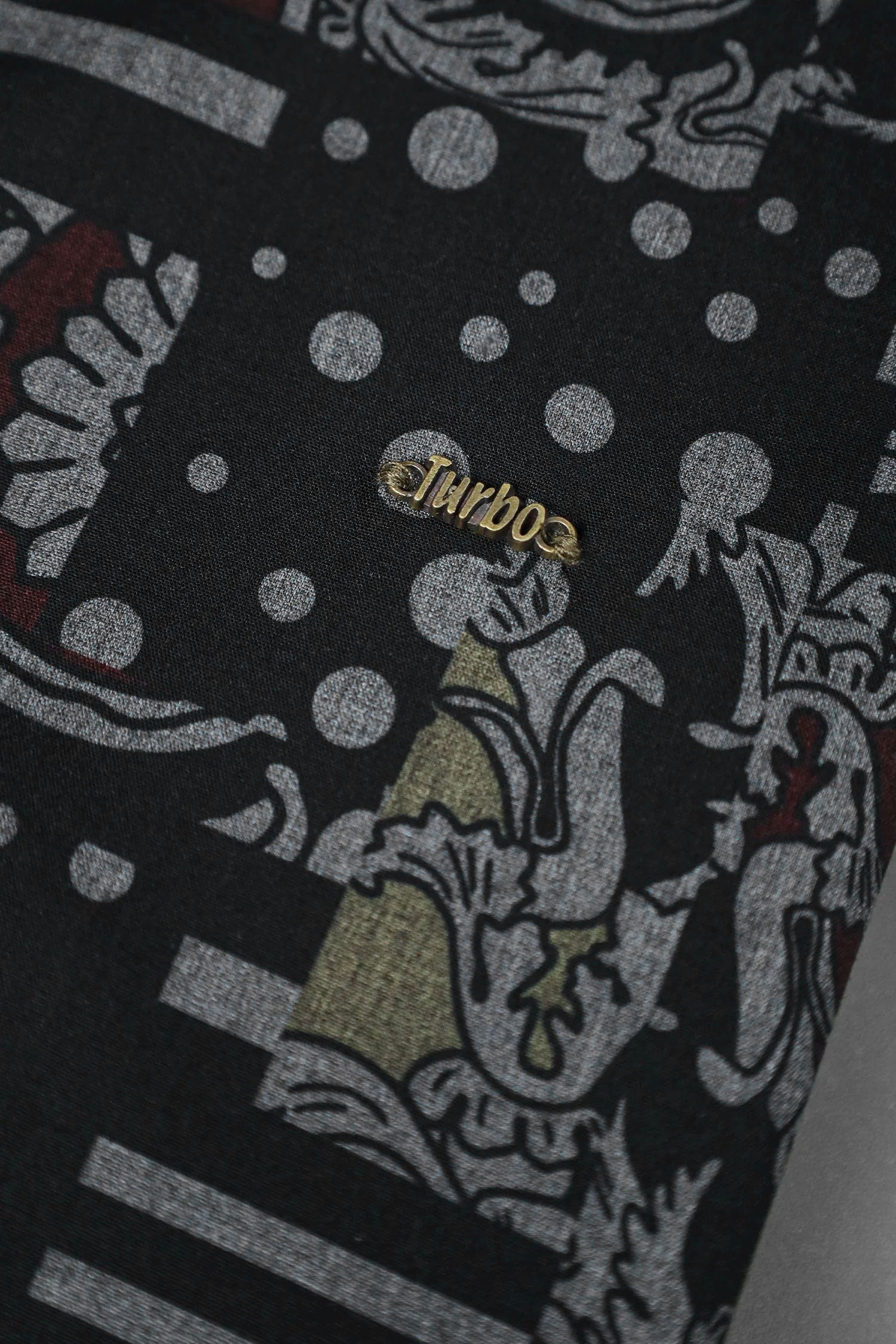 Turbo Retro Flower Motif Long Sleeve Cotton Casual Shirt In Black