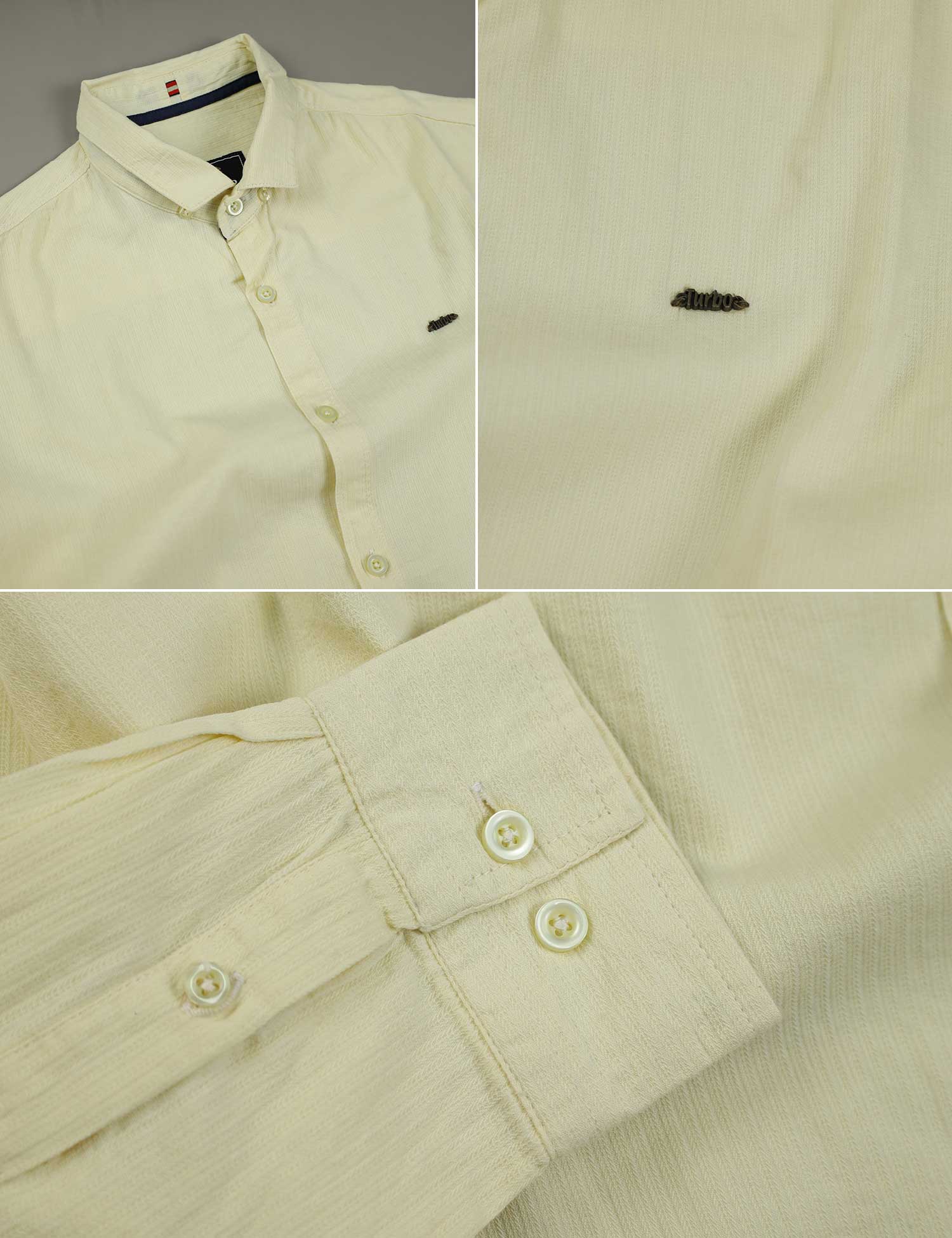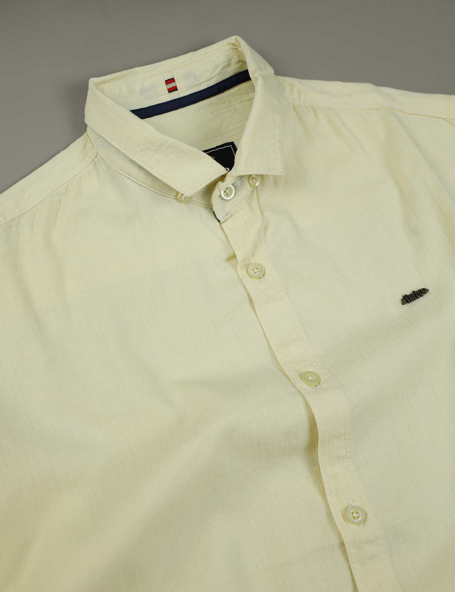 Turbo Self Lining Long Sleeve Cotton Casual Shirt In Light Lemon