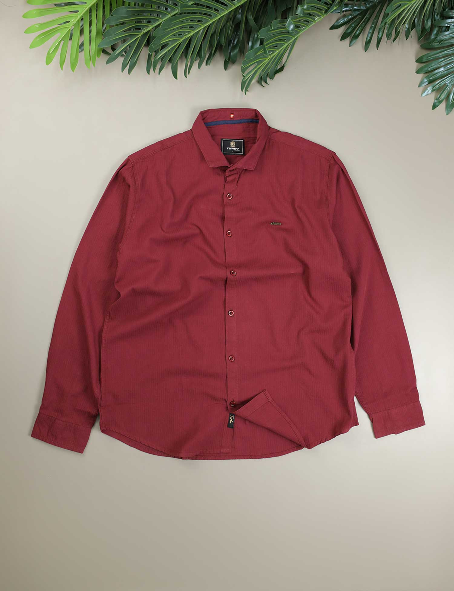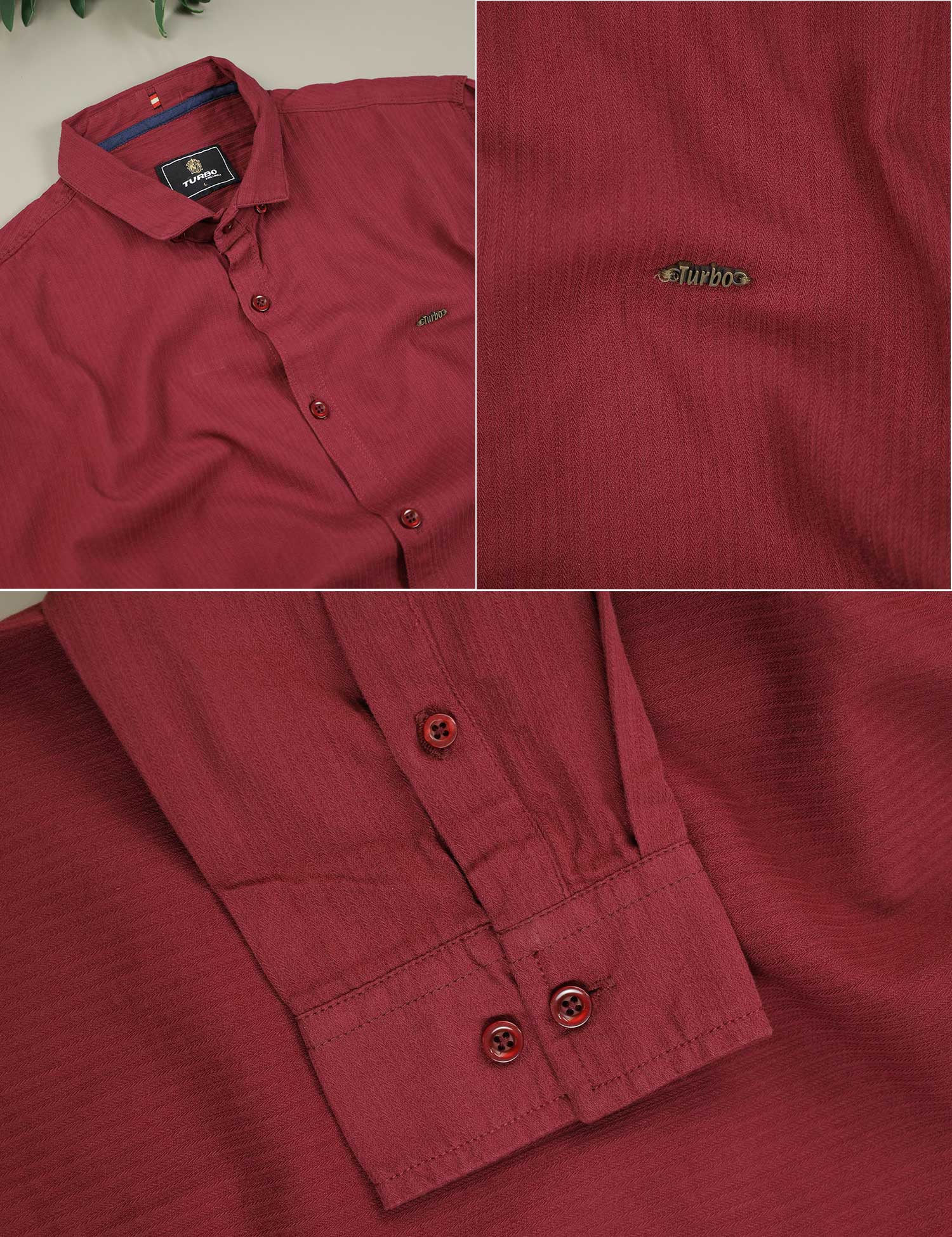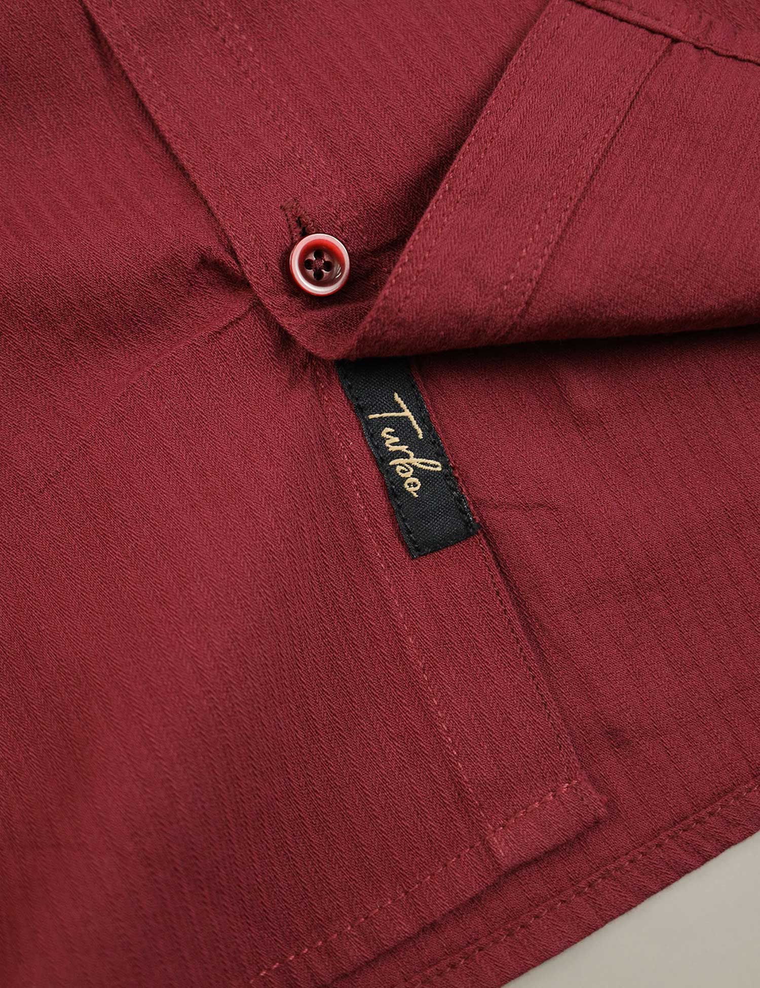 Turbo Self Lining Long Sleeve Cotton Casual Shirt In Maroon