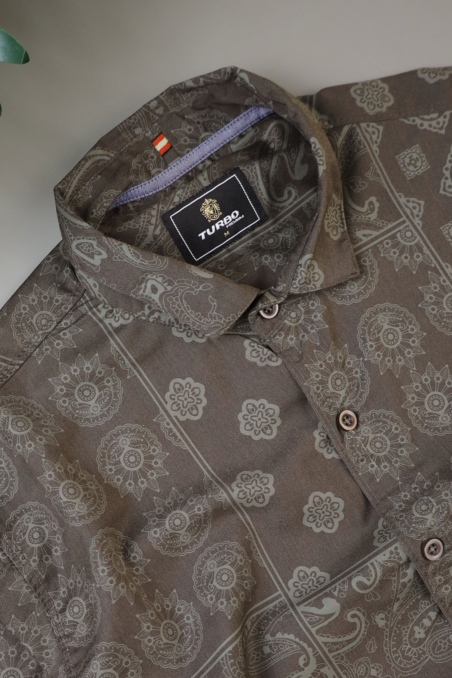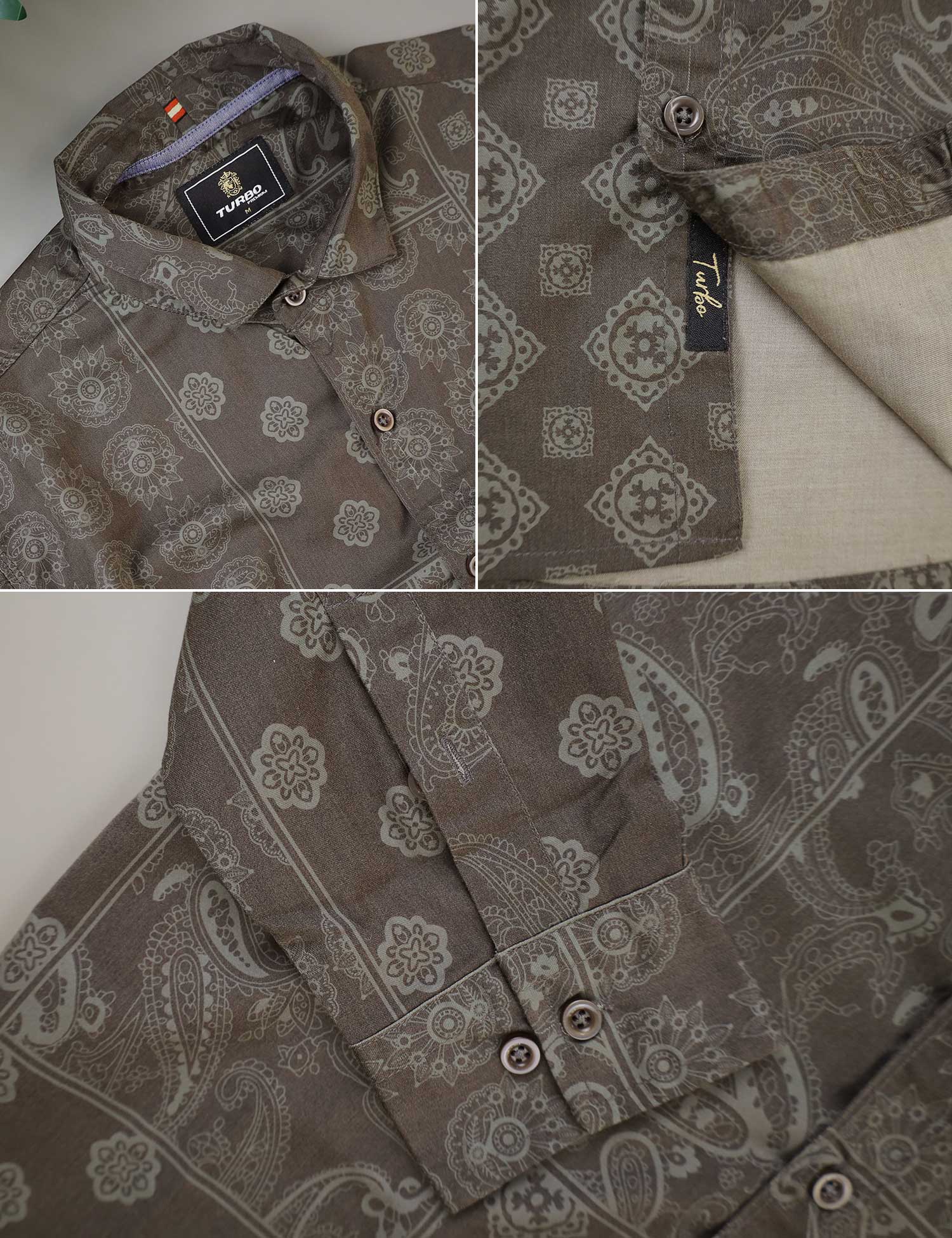 Turbo Splash Printed Long Sleeve Cotton Casual Shirt In Charcoal Grey