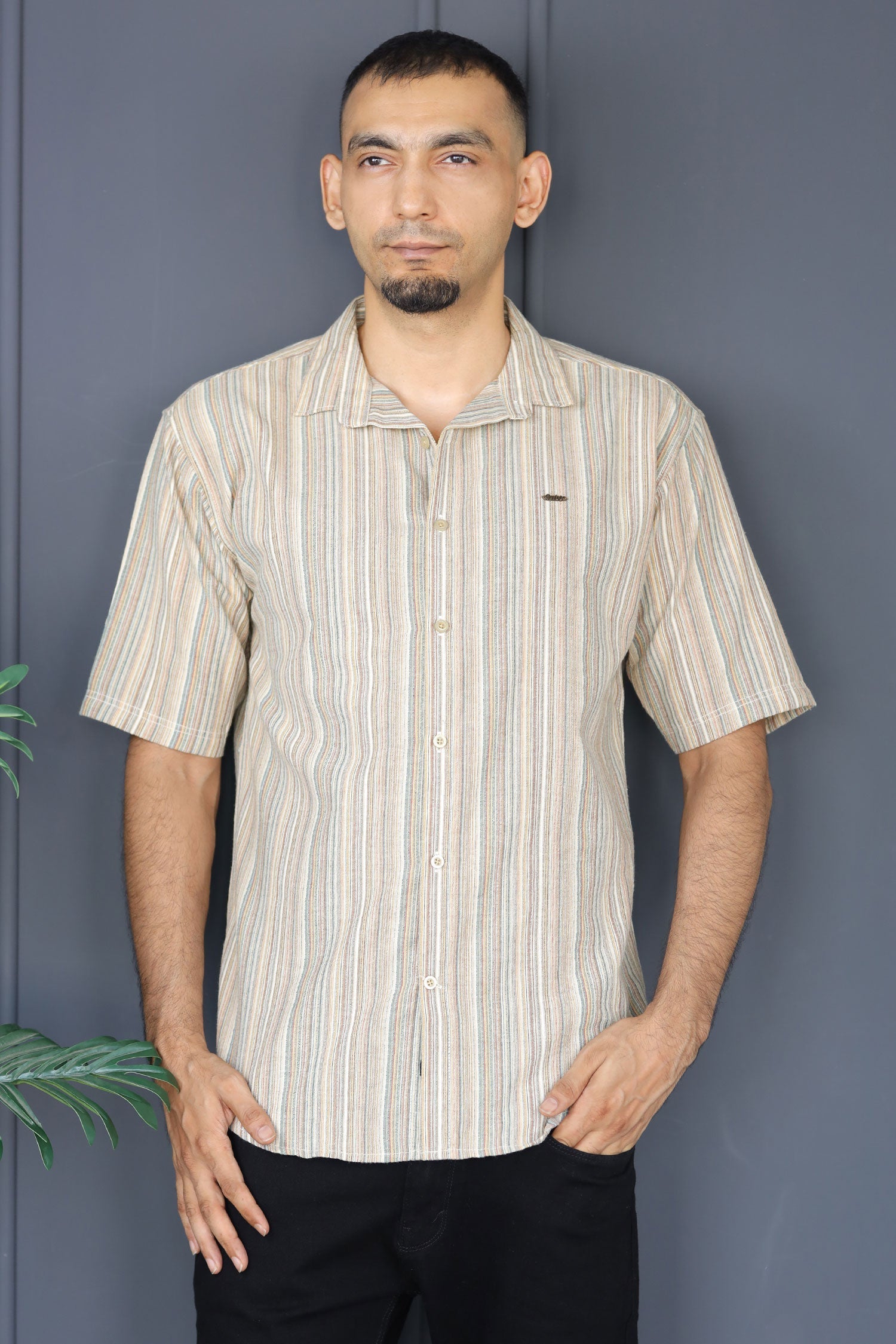 Turbo Spring Edit Textured Casual Shirt In Beige