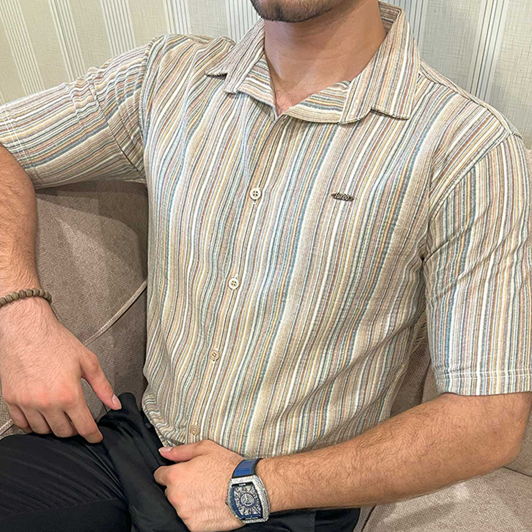 Turbo Spring Edit Textured Casual Shirt In Beige