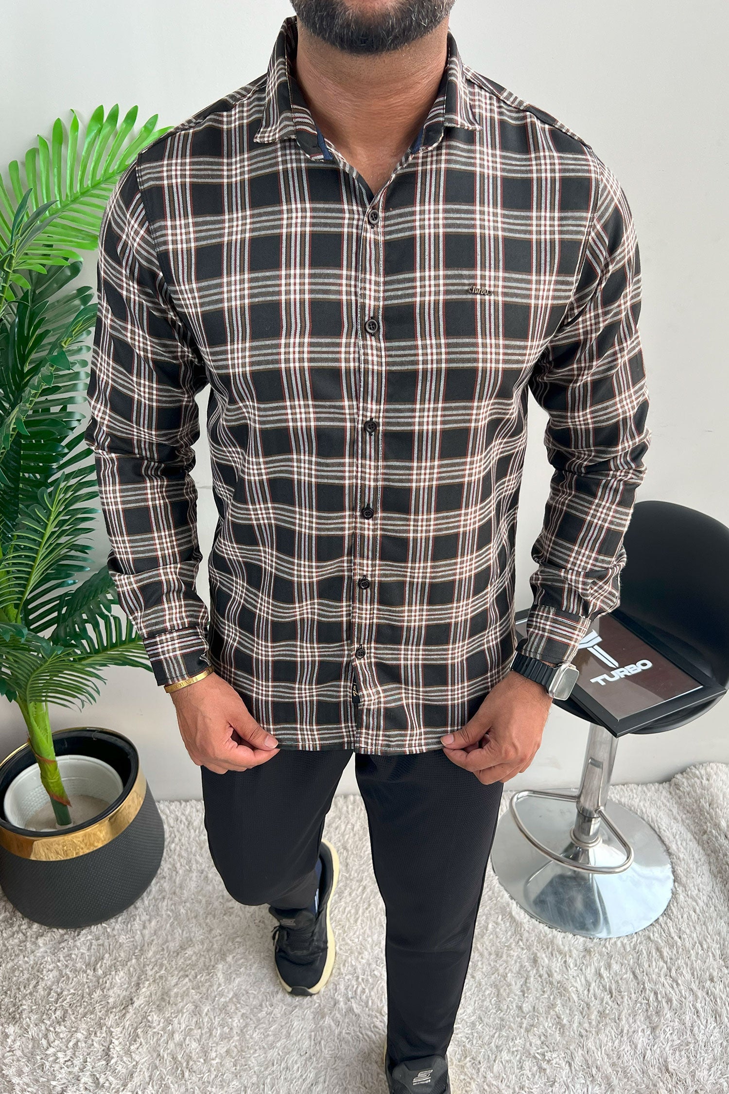 Turbo Tattersall Checkered Long Sleeve Cotton Casual Shirt