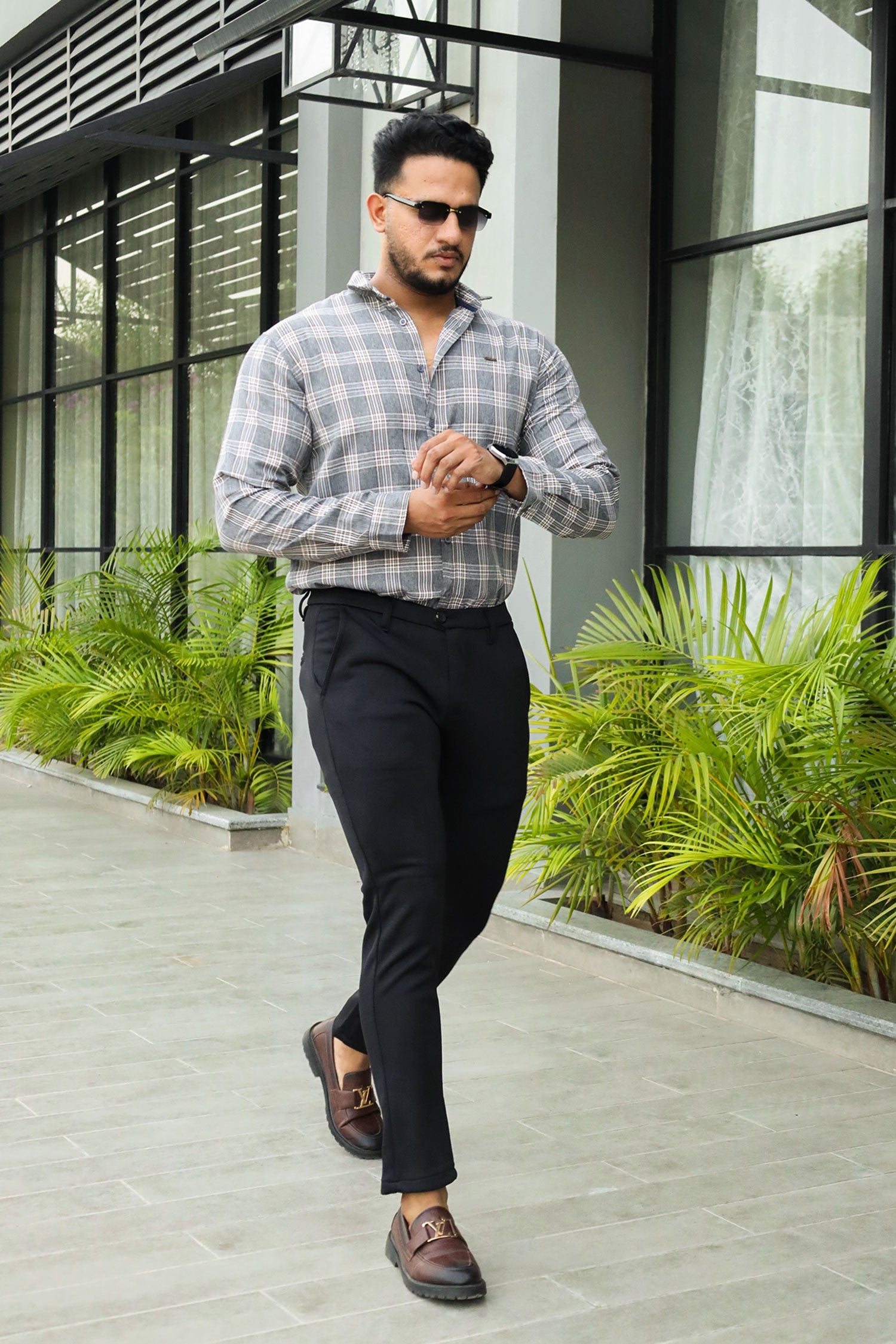 Turbo Tattersall Checkered Long Sleeve Cotton Casual Shirt In Grey