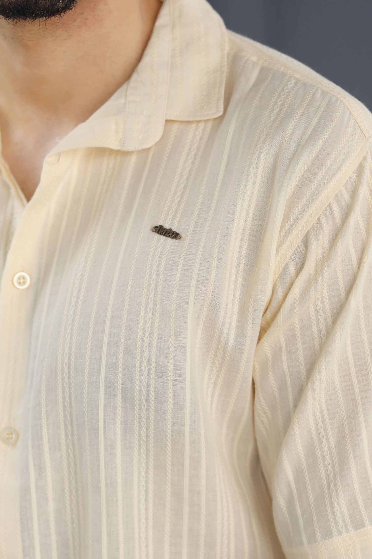 Turbo Textured Champ Casual Shirt In Light Lemon