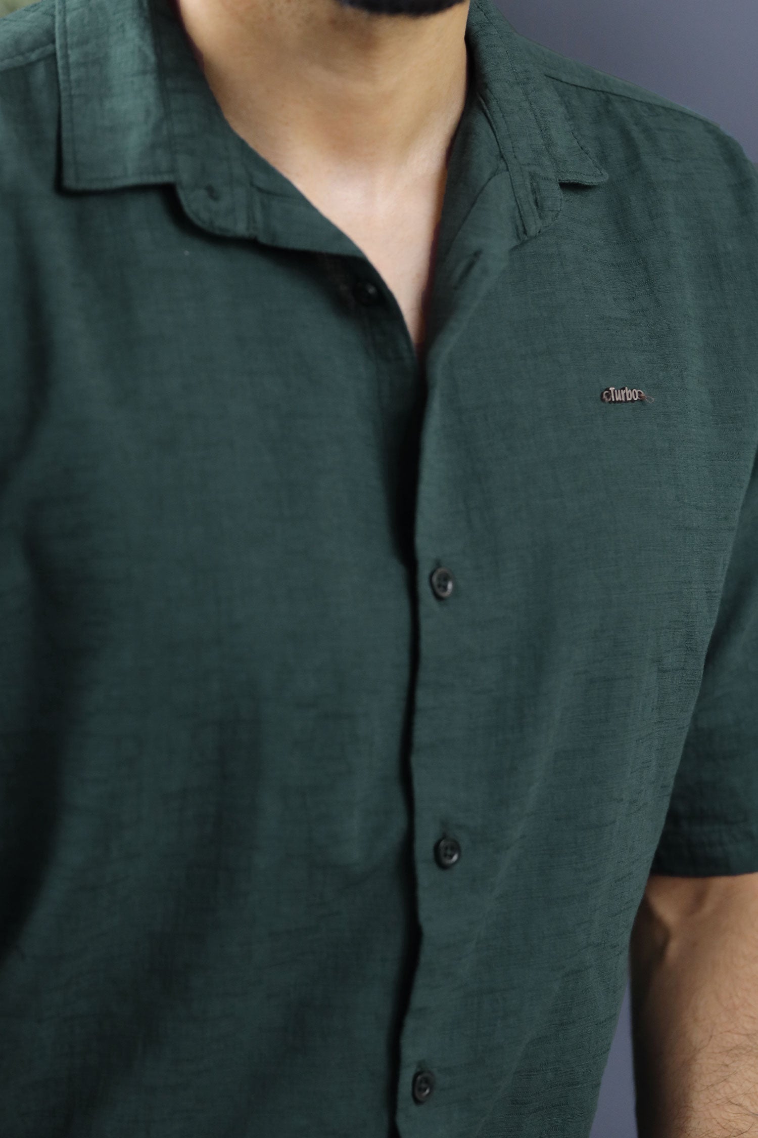 Turbo Textured Relaxed Fit Casual Shirt In Dark Green