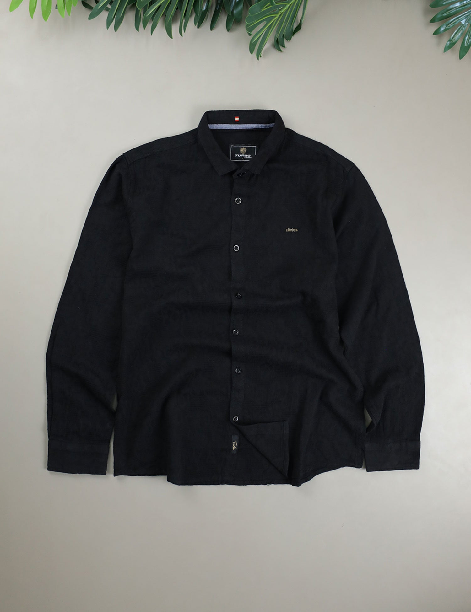 Turbo Vintage Patterend Long Sleeve Cotton Casual Shirt In Black